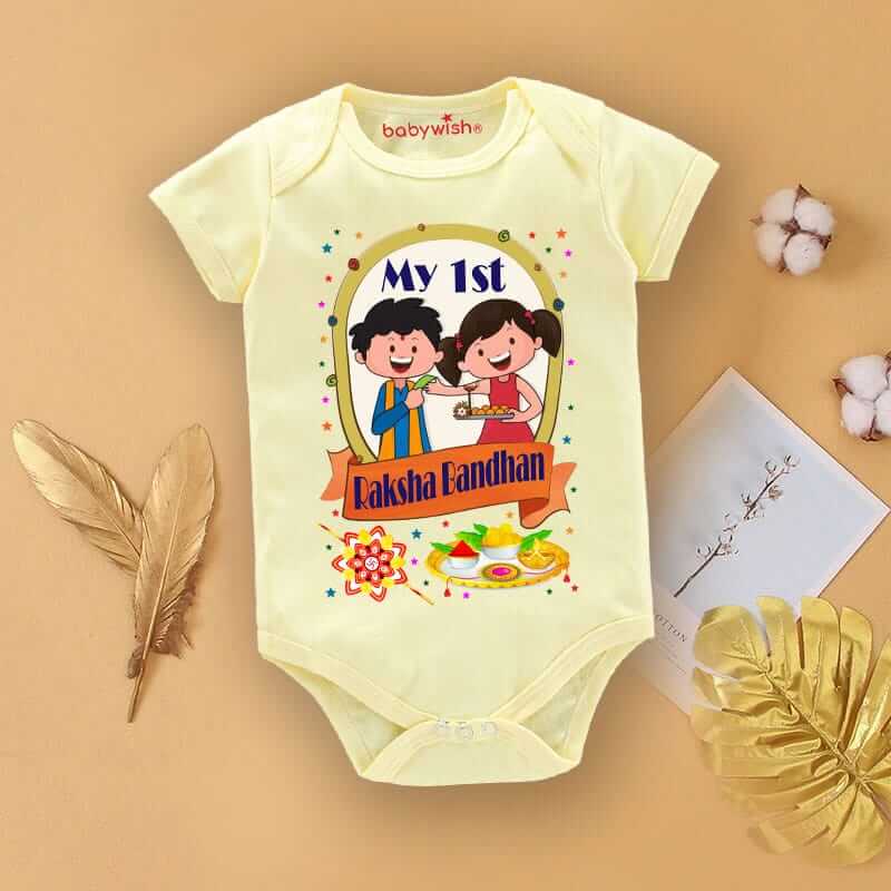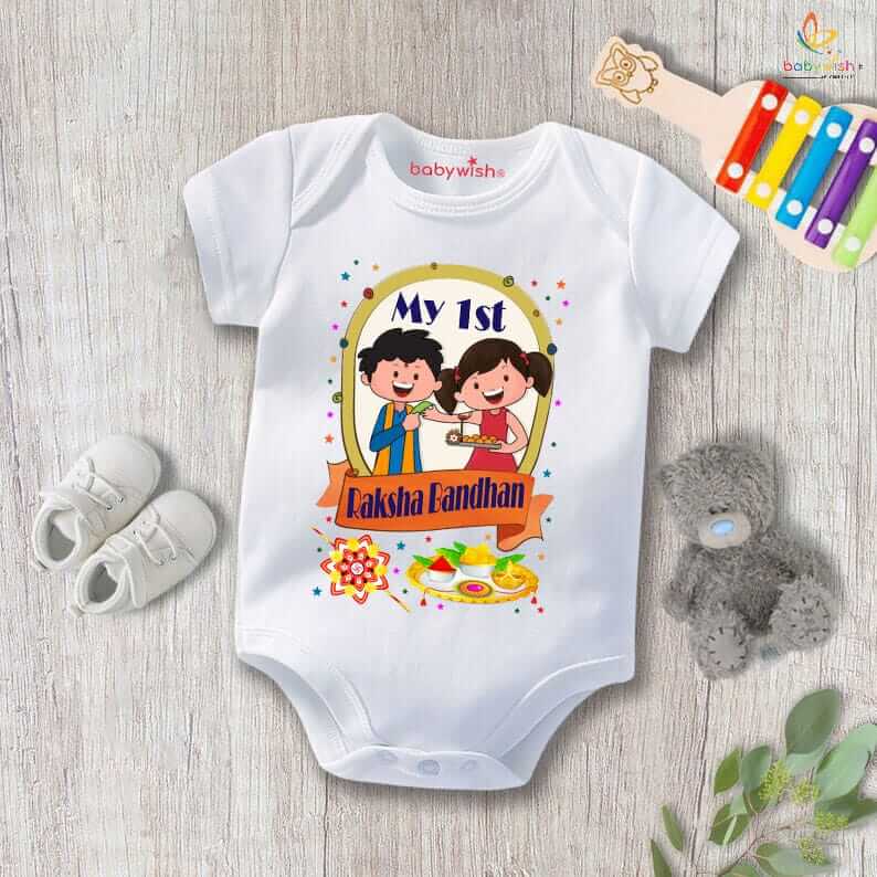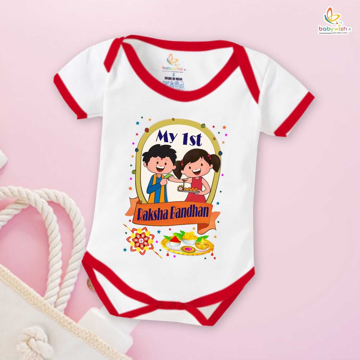 Adorable Rakshabandhan Romper for Kids, Brother Sister Matching Outfit, Soft Cotton Half Sleeve Dress, Cute Rakhi Gift Onesie for Boys and Girls Babywish