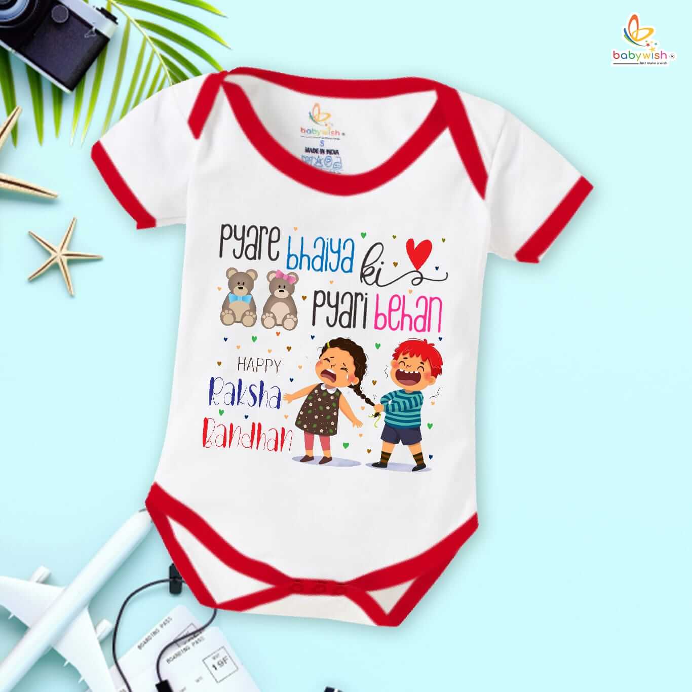 Rakshabandhan Romper for Kids, Brother Sister Matching Outfit, Cute Rakhi Festival Gift, Soft Cotton Half Sleeve Onesie for Boys & Girls – Babywish