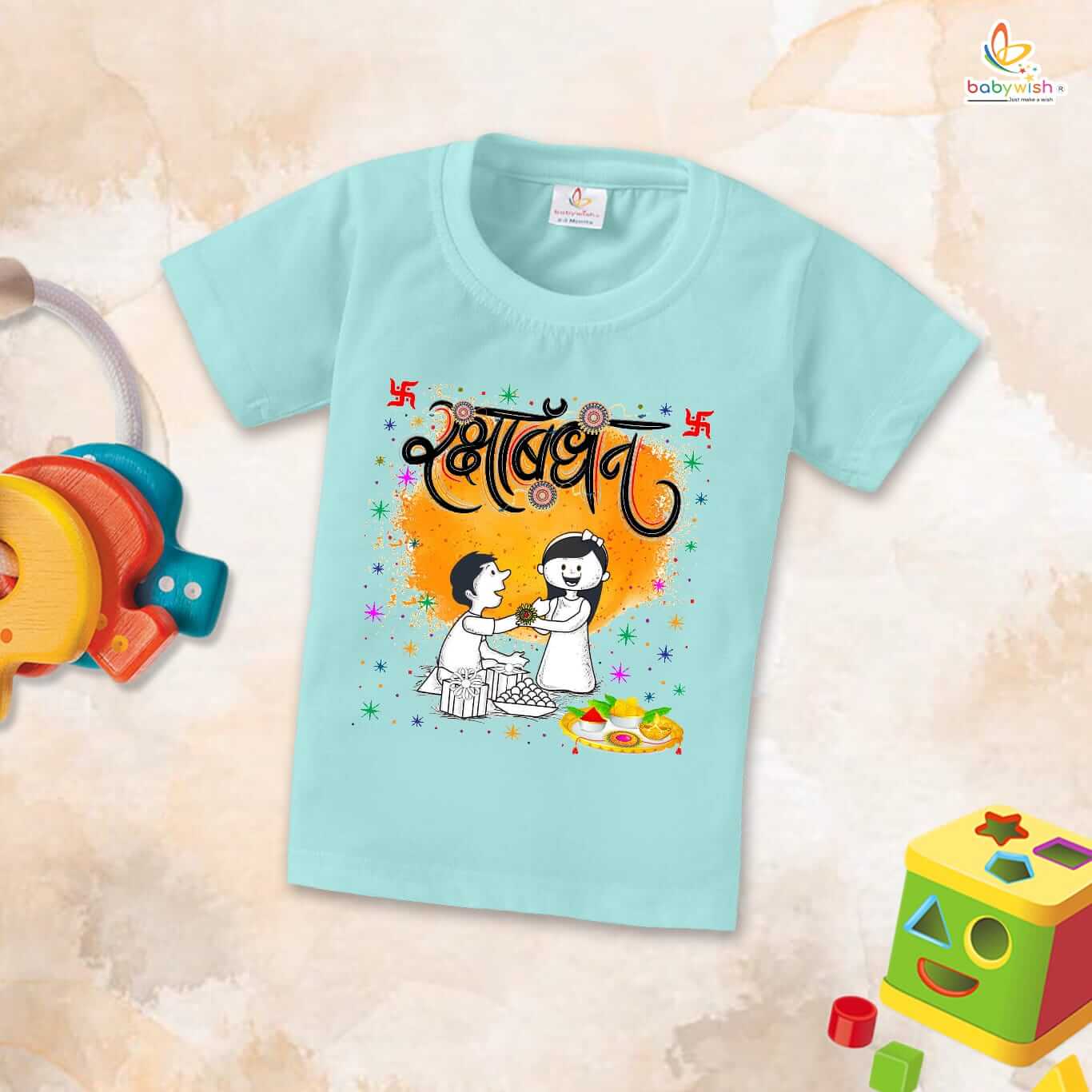 Rakshabandhan T-Shirt for Kids, Brother Sister Matching Outfit, Cute Rakhi Festival Gift Tee, Half Sleeve Cotton Topwear for Boys & Girls – Babywish