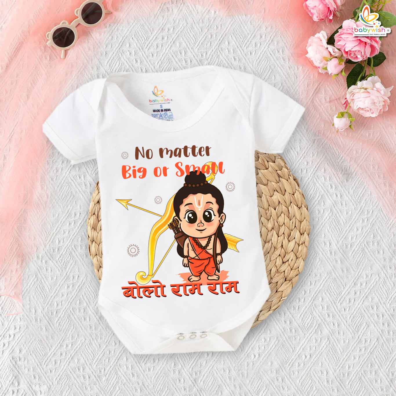 My First Ramnavmi Romper – Baby Bodysuit with “No Matter Big or Small, Bolo Ram Ram” Quote | Hindu Festival Outfit for Infants by Babywish