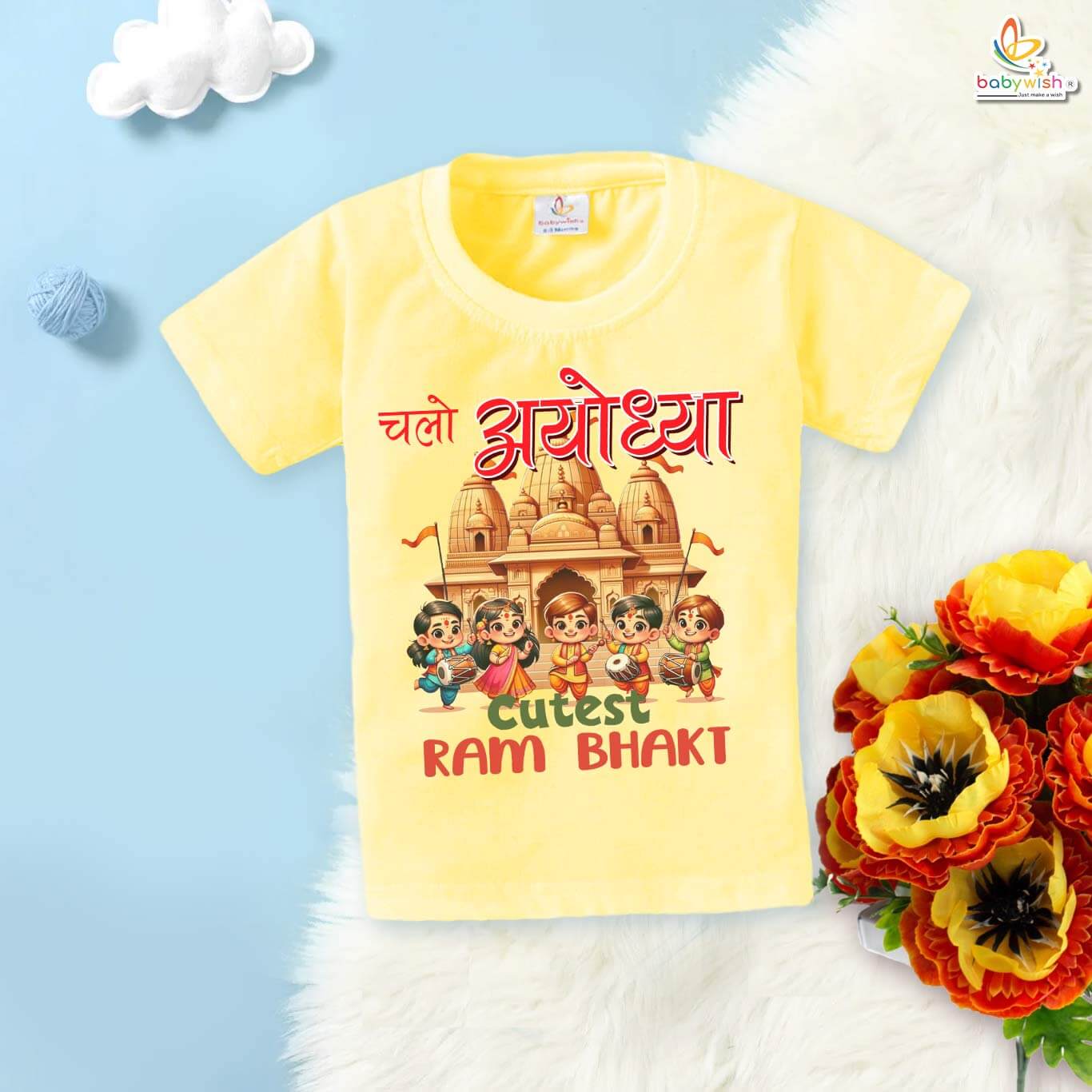 My First Ramnavmi T-Shirt – Baby Ayodhya Theme Outfit with “Chalo Ayodhya” Quote | Traditional Hindu Festival Baby Clothes by Babywish