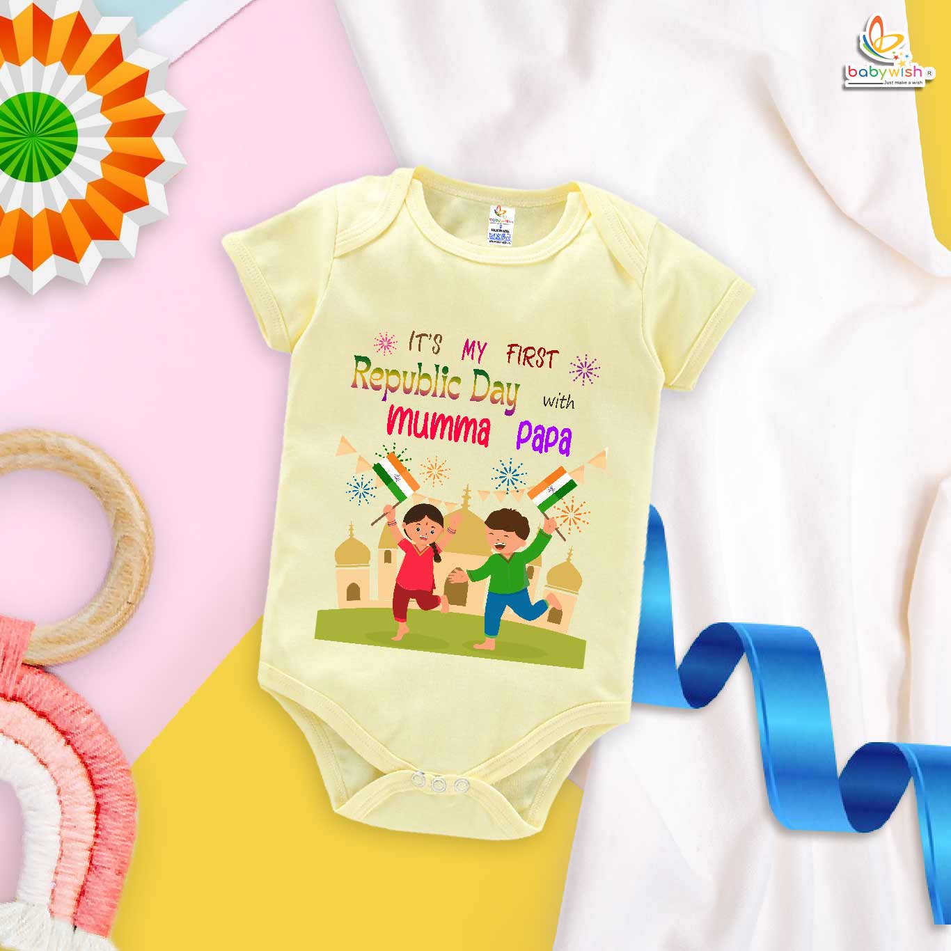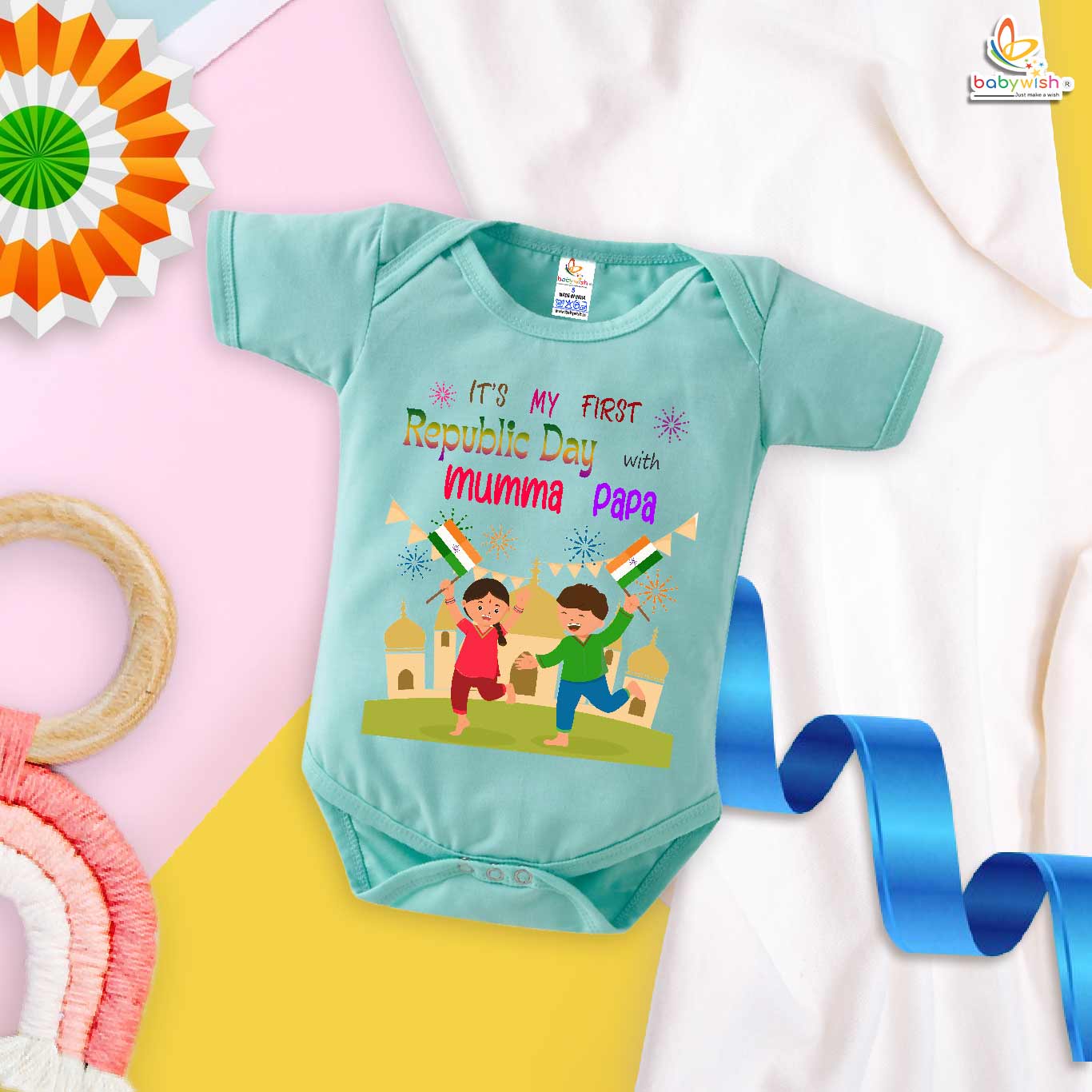 My First Republic Day Romper | It’s My First Republic Day with Mumma Papa Baby Bodysuit | Patriotic 26th January Outfit for Boys & Girls – Babywish