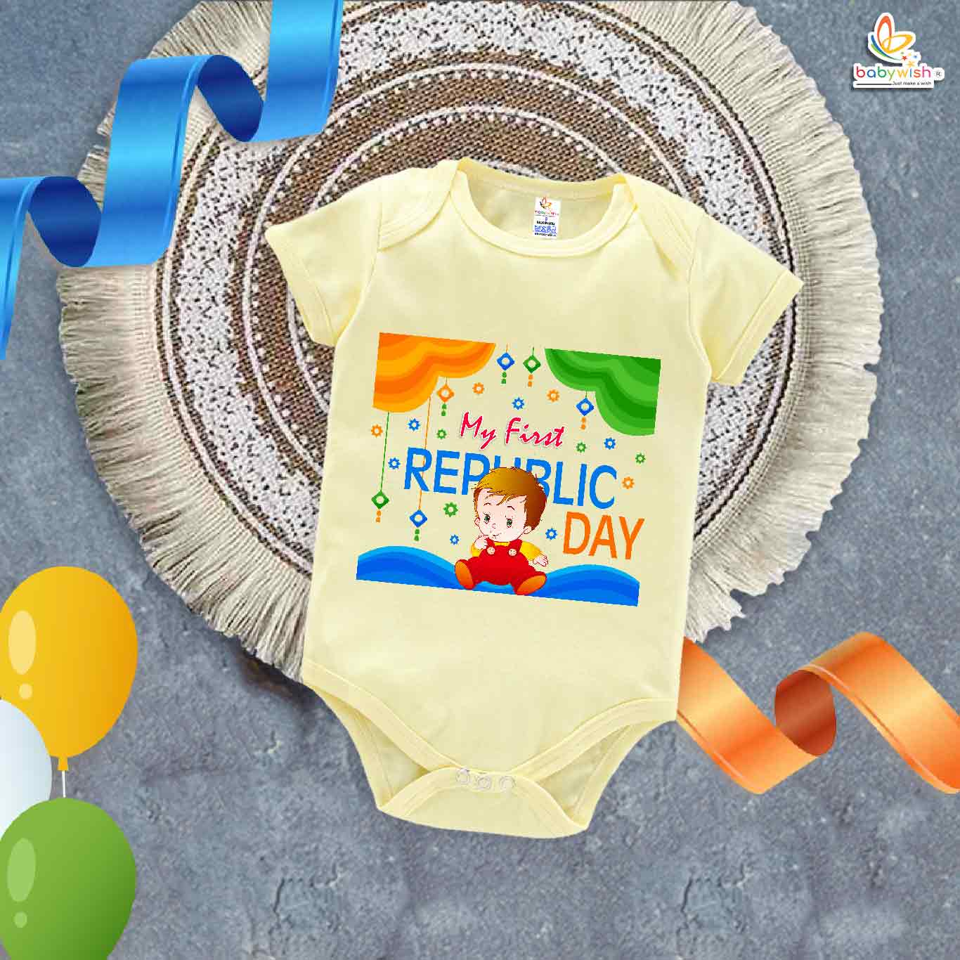 My First Republic Day Romper for Baby Boy | 26th January Bodysuit with Baby Boy Print | Patriotic Outfit for Infants | Republic Day Baby Clothes | Babywish