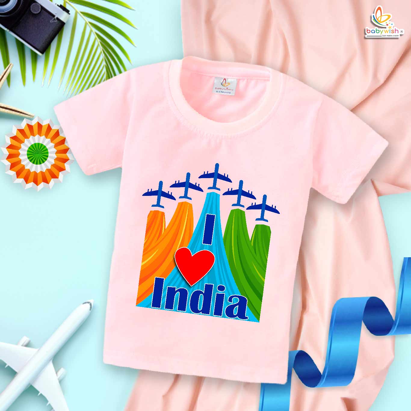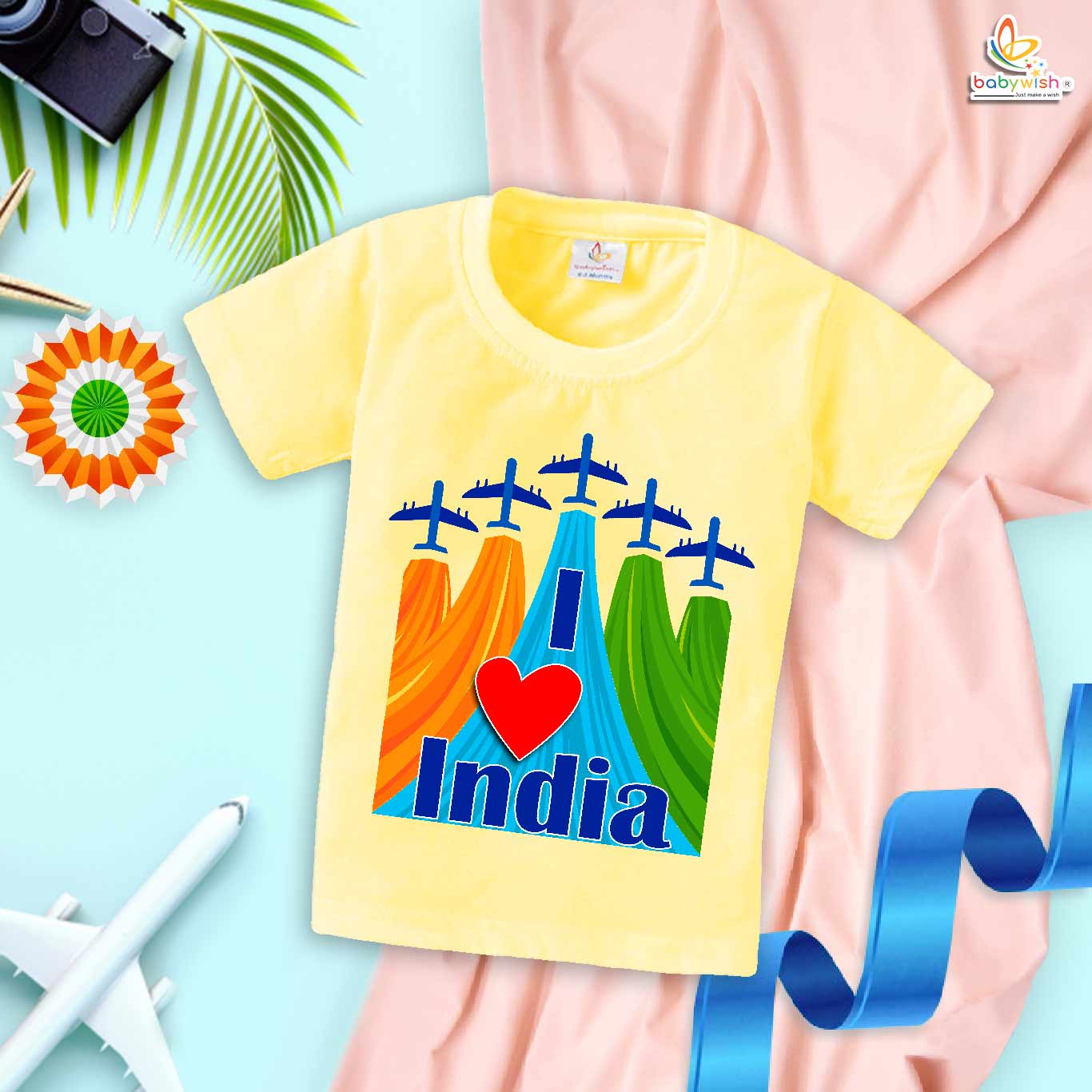 My First Republic Day T-Shirt | I Love INDIA Aeroplane Print Baby Tee | 26th January Patriotic Outfit for Kids | Republic Day T-Shirt for Babies | Babywish