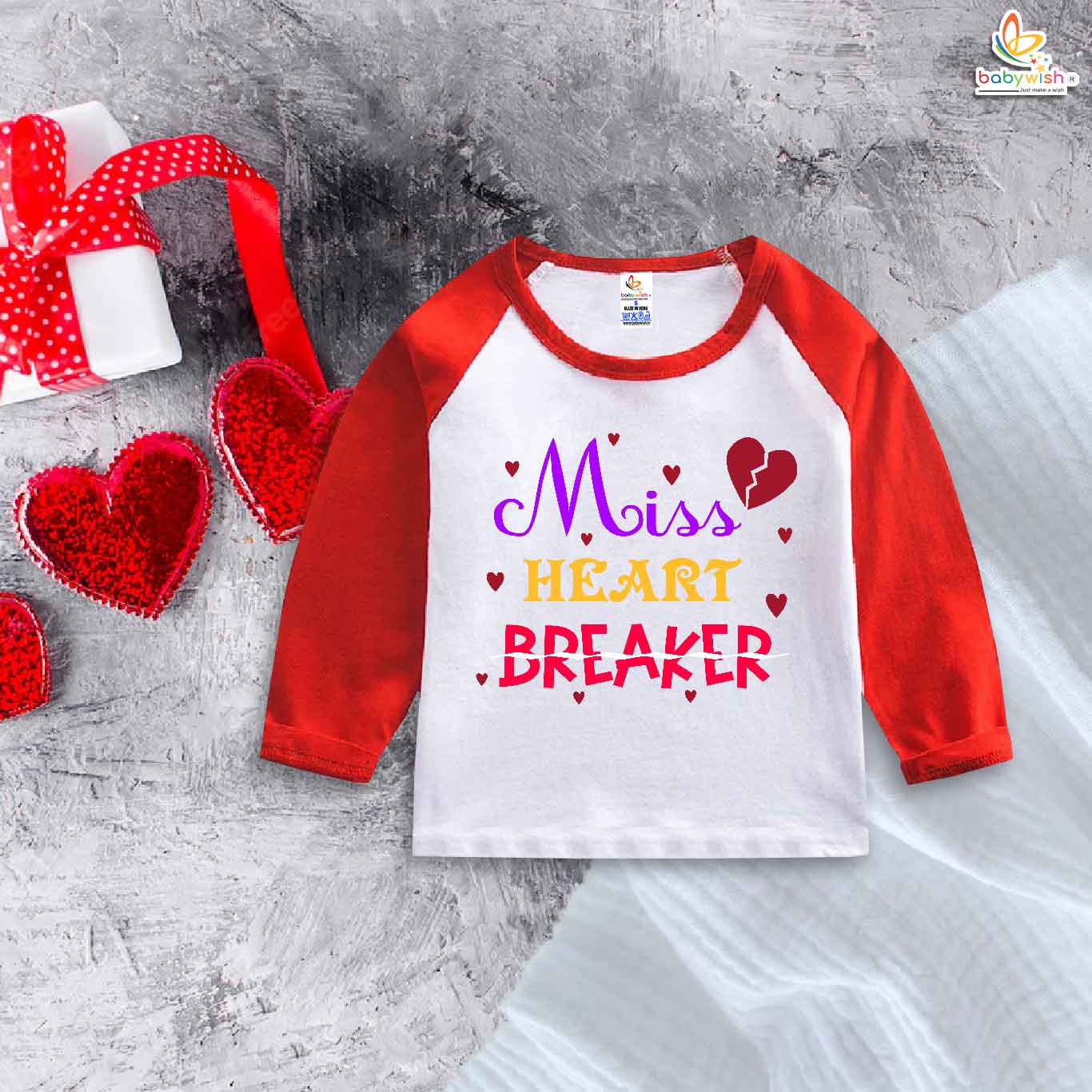 Miss Heart Breaker Baby Girl Valentine’s Day T-Shirt – My First Valentine’s Day Full Sleeve Outfit | Cute Baby Clothes for Girls | Gift for Newborn & Infant – Babywish