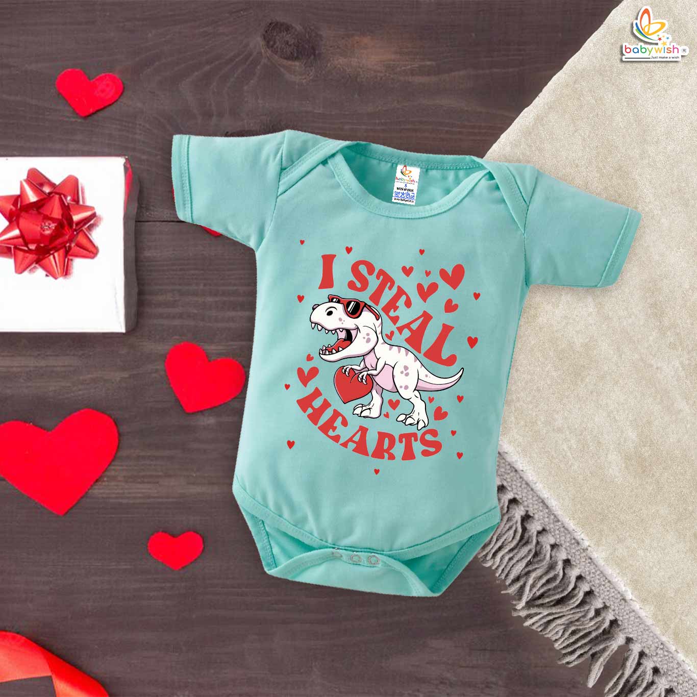 My First Valentine’s Day Romper | “I Steal Hearts” Dinosaur Baby Bodysuit for Boys & Girls – Babywish