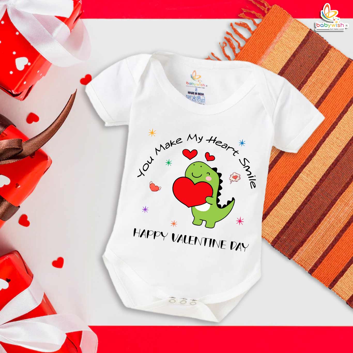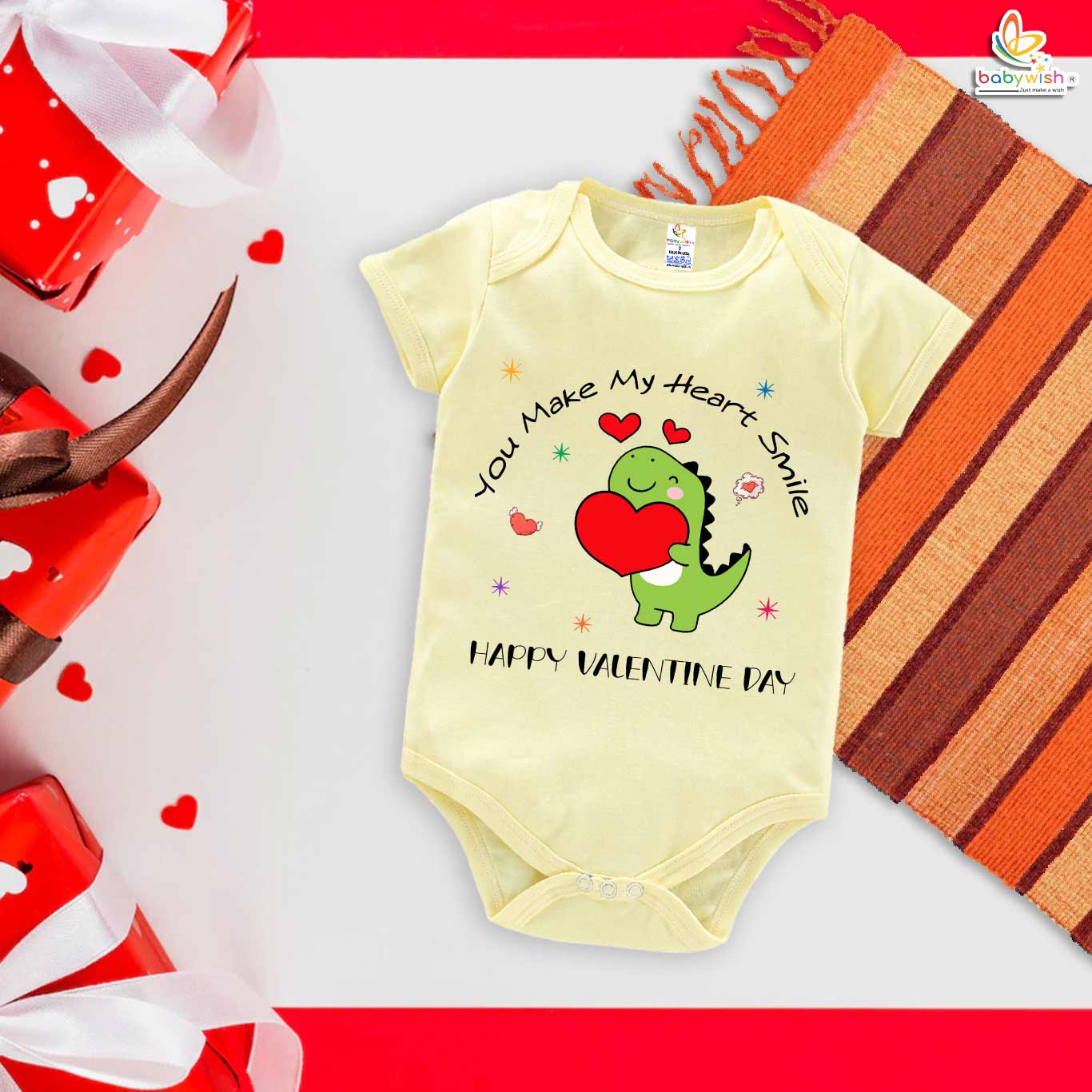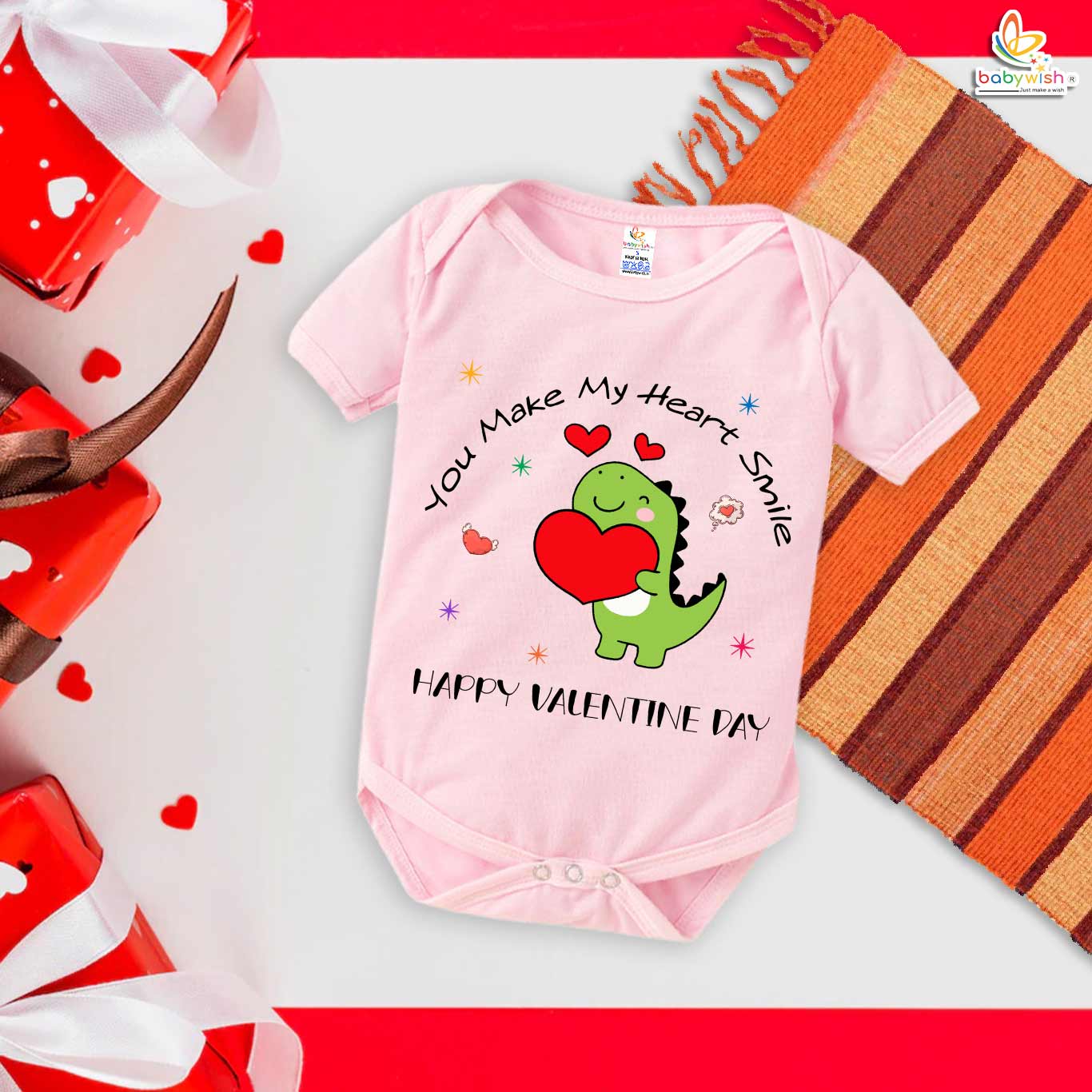 Be the first to review “My First Valentine’s Day Romper | “You Make My Heart Smile” Baby Bodysuit – Babywish”