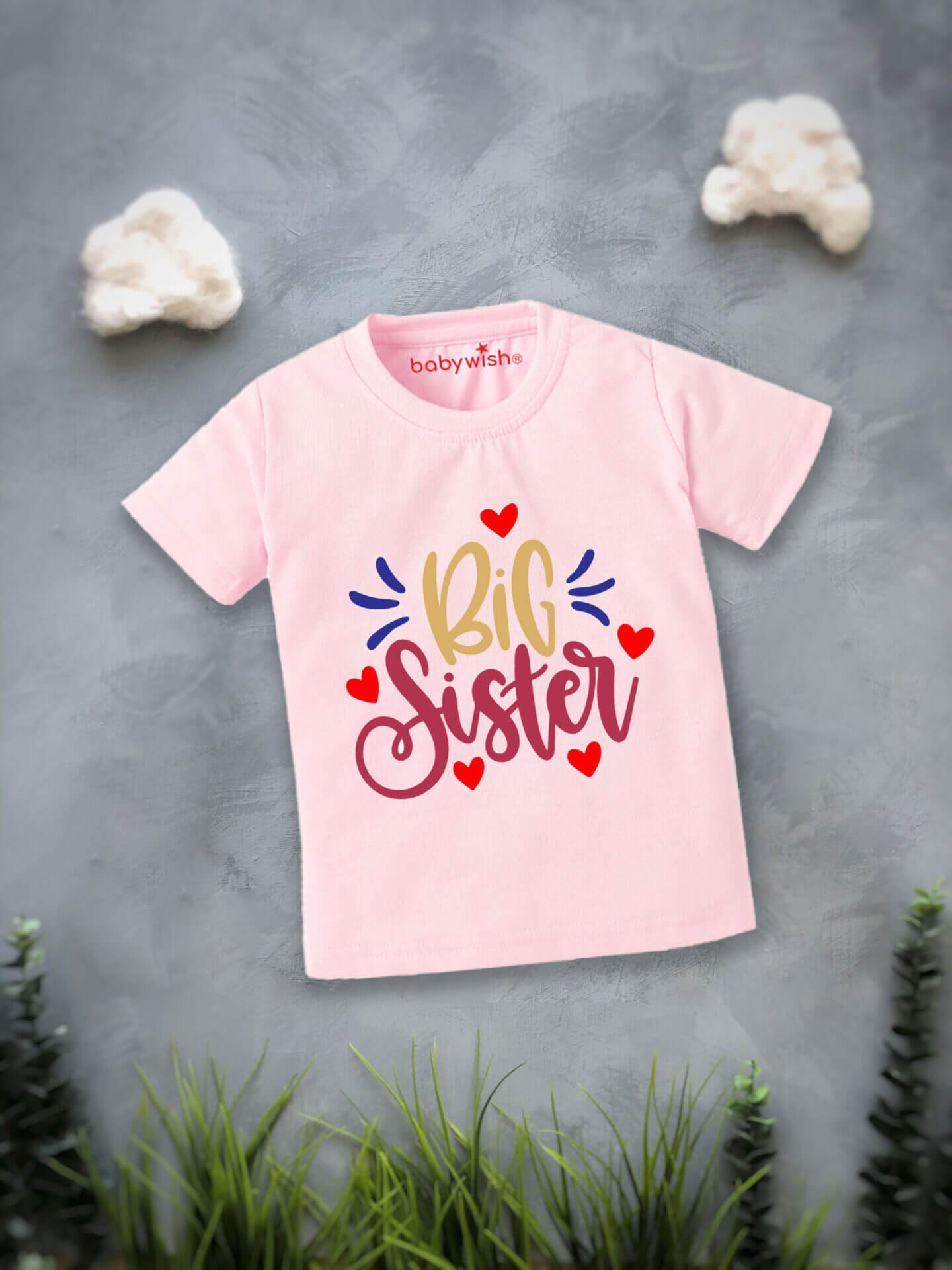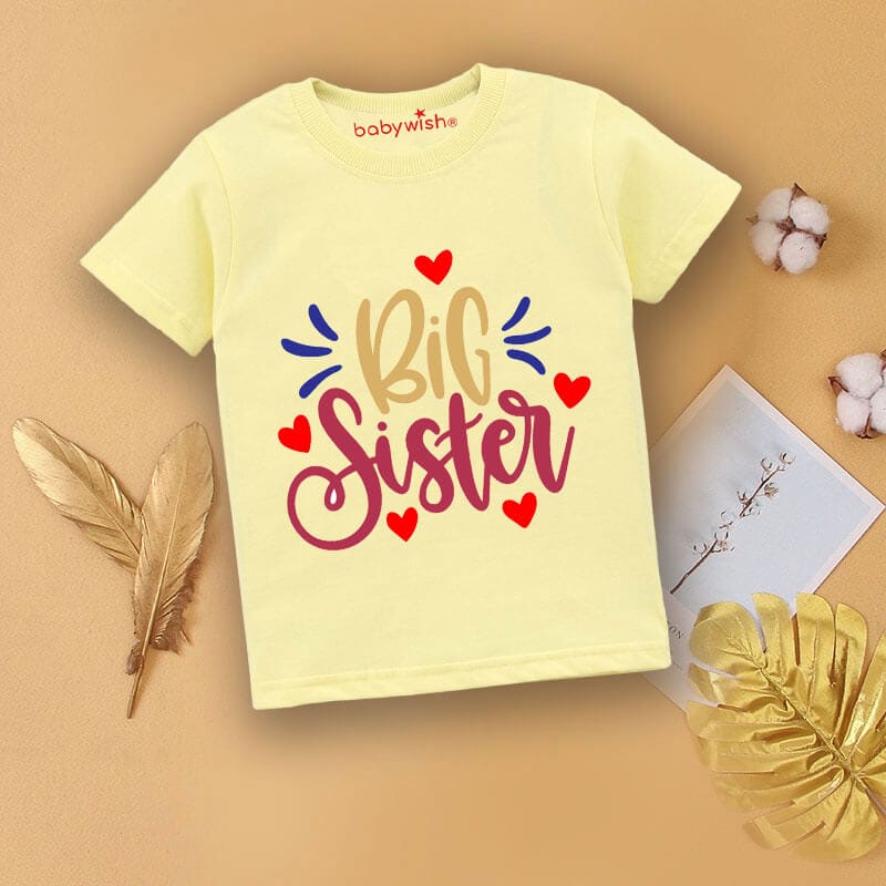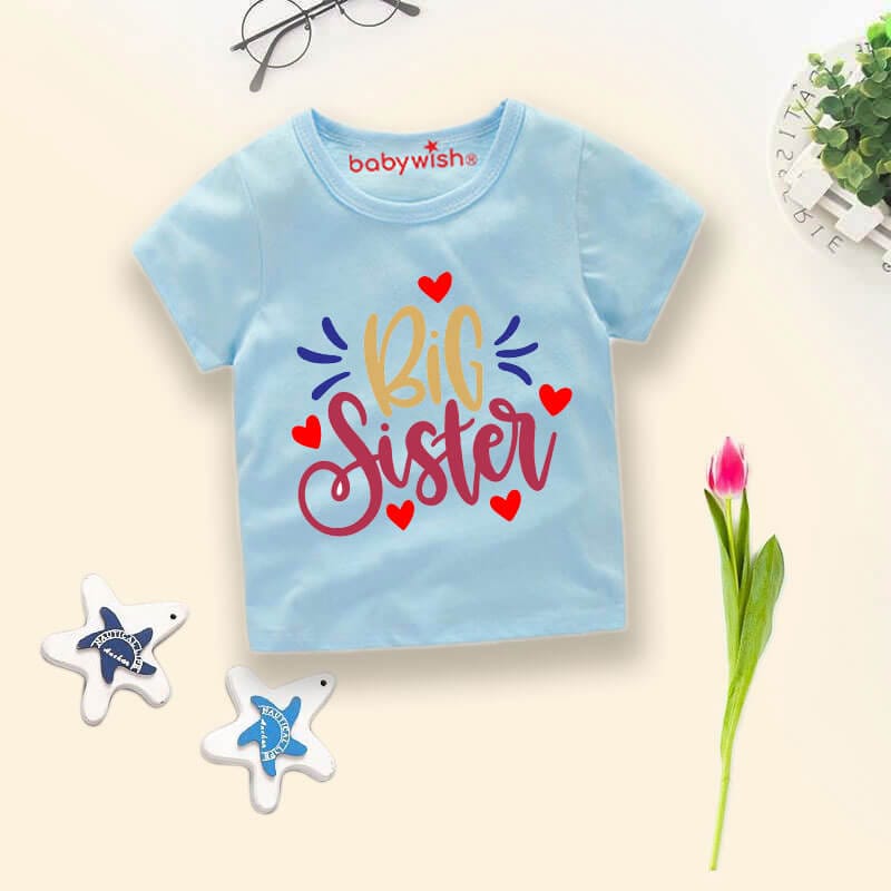 Celebrate the joy of becoming a big sister with this adorable Big Sister Babywish T-Shirt. Designed with love, this cute sibling announcement tee features a stylish “Big Sister” print with heart graphics that make it perfect for family photos, baby announcement shoots, birthdays, and special occasions.