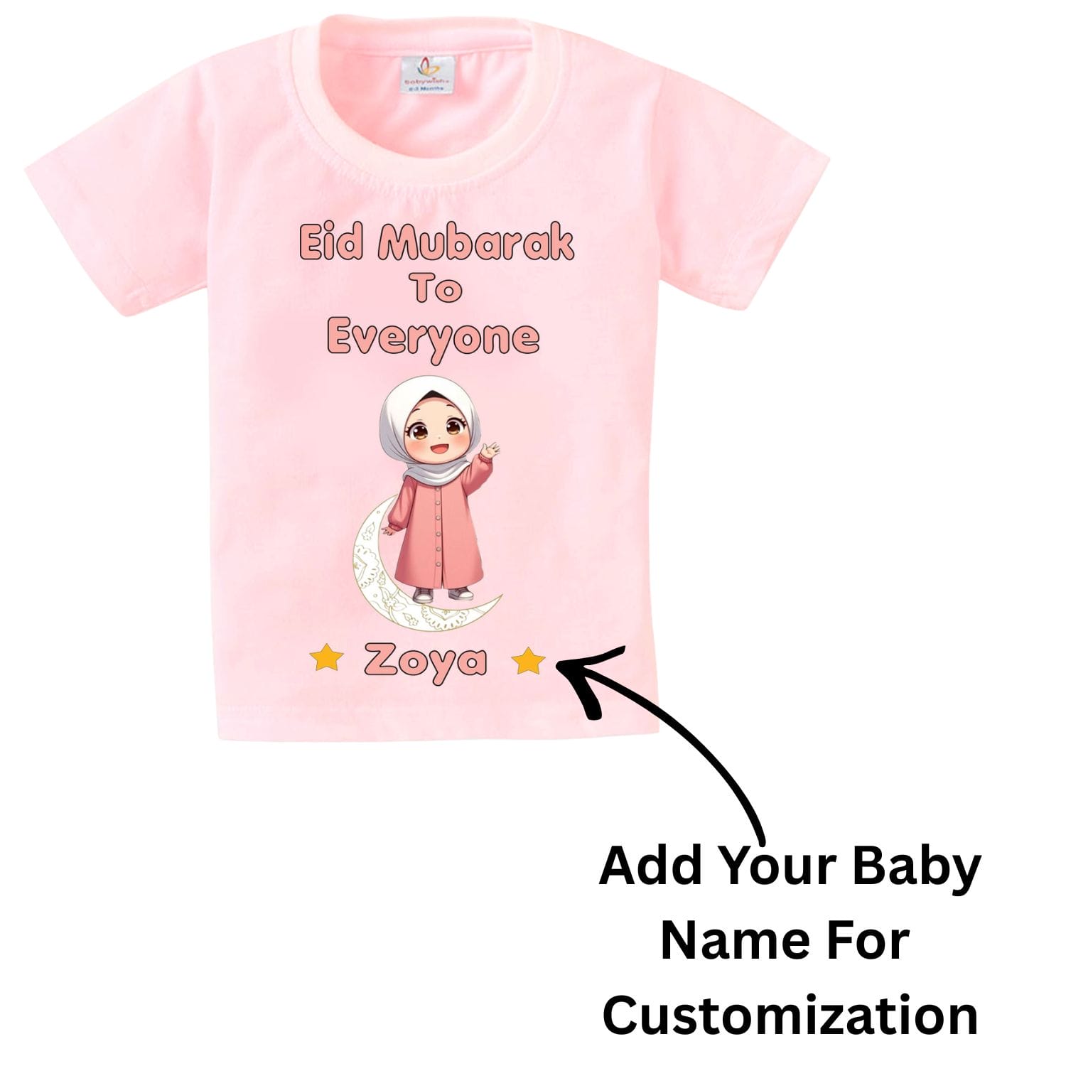 Looking for a personalized Eid T-shirt for baby girl, Ramadan festive outfit, Islamic celebration clothing, or cute Eid gift for kids? This Babywish exclusive design is the perfect choice.