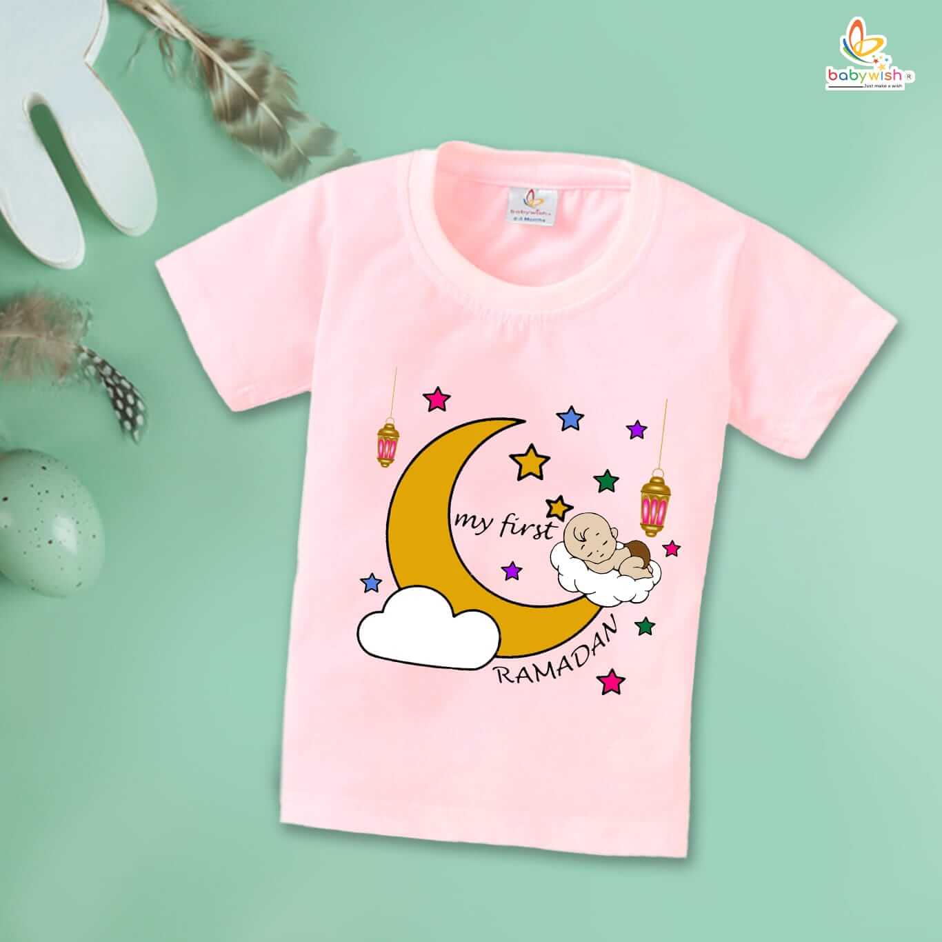 Eid T-shirt for Kids Unisex Ramadan Topwear Outfit | Printed Half Sleeve Tshirt for Boys & Girls | Festive Eid Mubarak Clothing