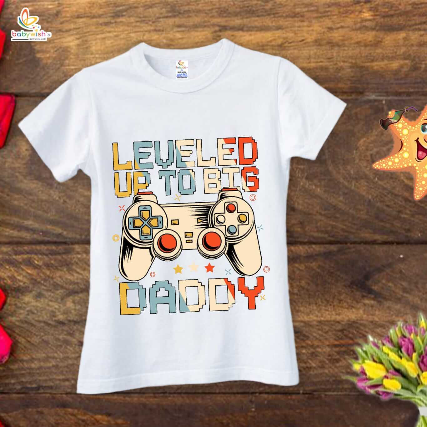 Father’s Day Special Combo White T-Shirts & Romper Set for Father and Baby | Leveled Up to Big Daddy Matching Outfit Gift Pack of 2 for New Dads – Babywish