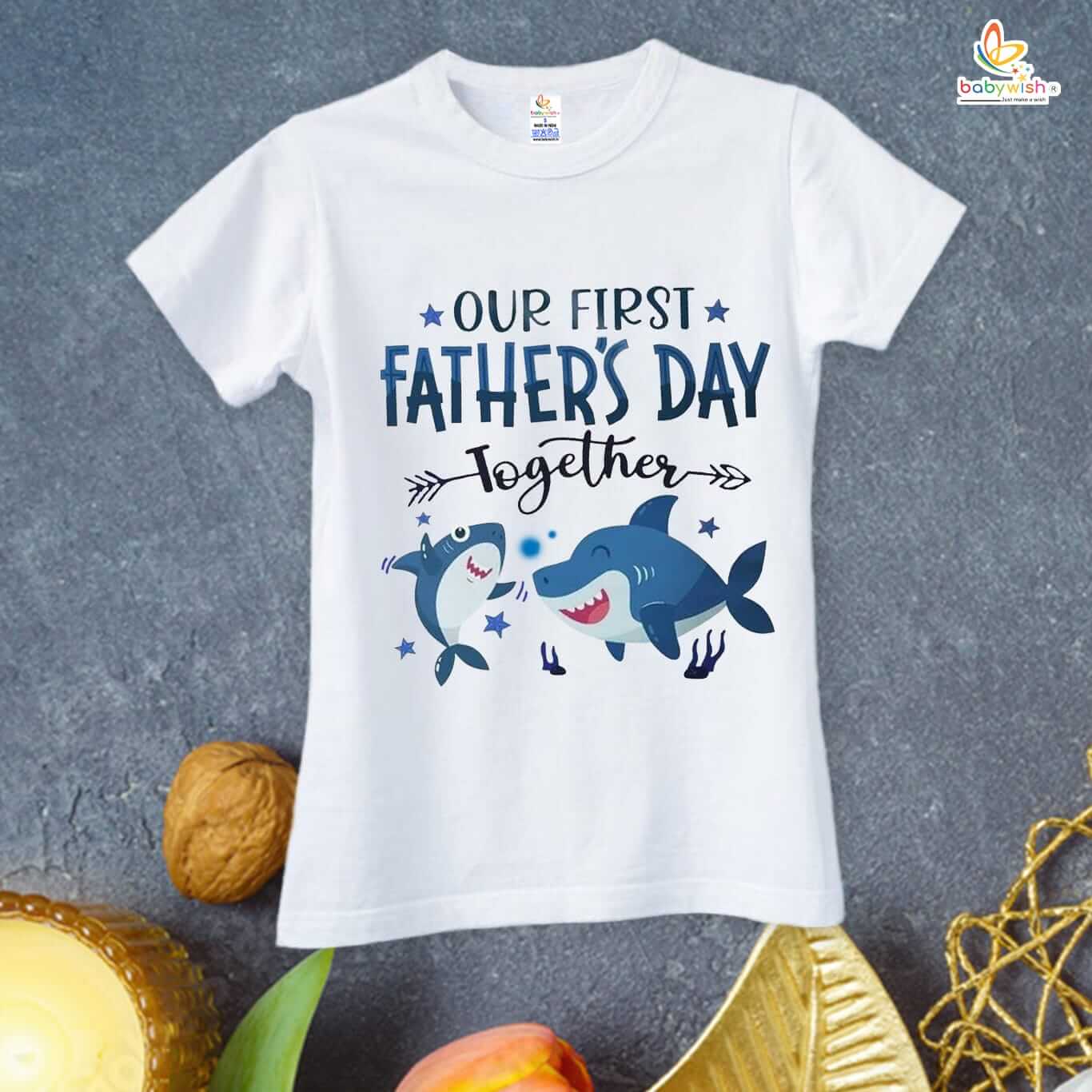 Fathers Day Special Matching T-Shirts Set for Dad and Kid – Our First Father’s Day Together – Shark Print Combo Pack of 2 | Unique Family Gift – Babywish