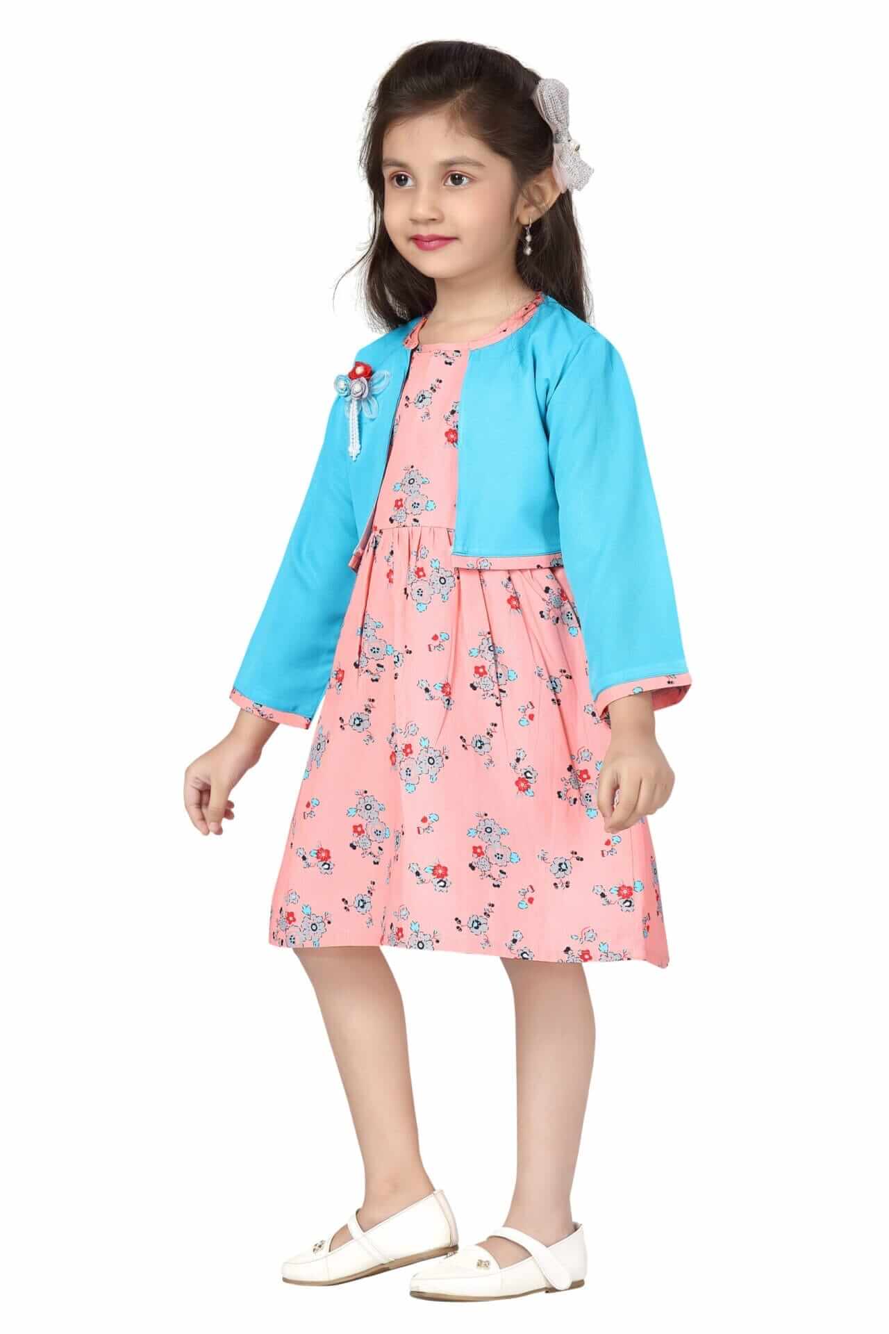 Girl Dress Knee Length Full Sleeve Floral Frock with Jacket Girls Wedding Party Dress Floral Print Jacket Frock Perfect for Birthday, Wedding, or Special Occasions