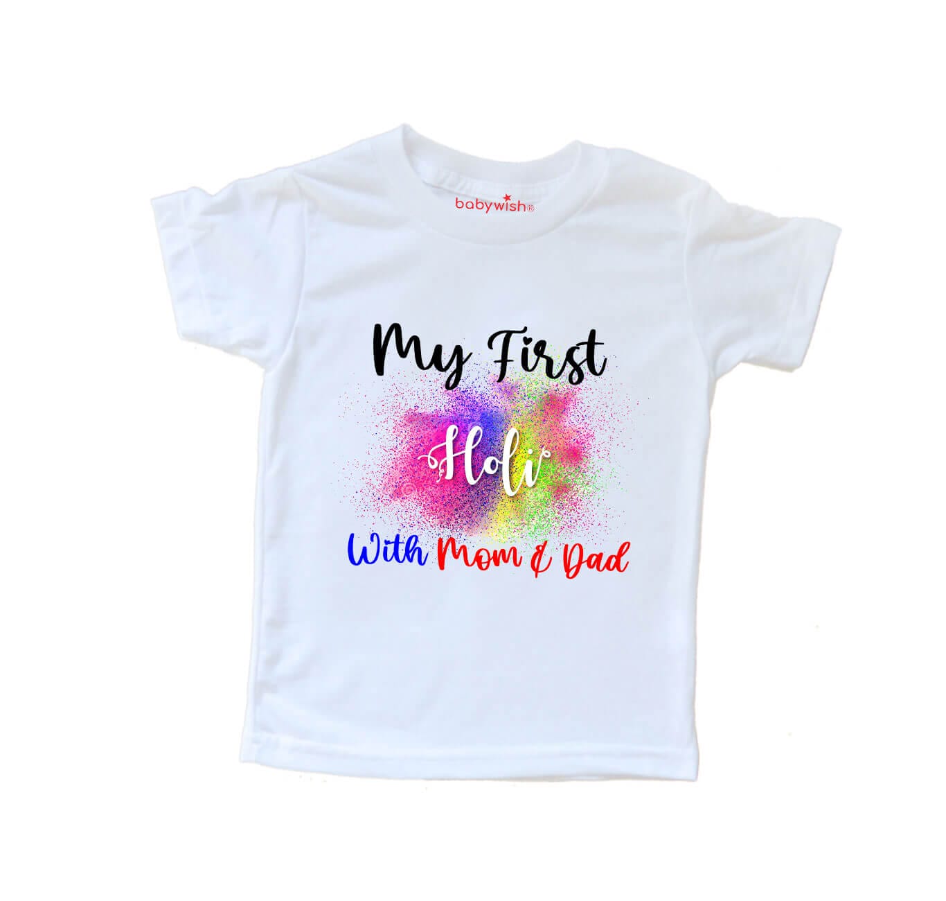 Celebrate your baby’s first Holi in style with the My First Holi With Mom & Dad T-Shirt by Babywish. Made from soft, breathable cotton, this colorful Holi t-shirt keeps babies and kids comfortable while creating adorable festive memories.