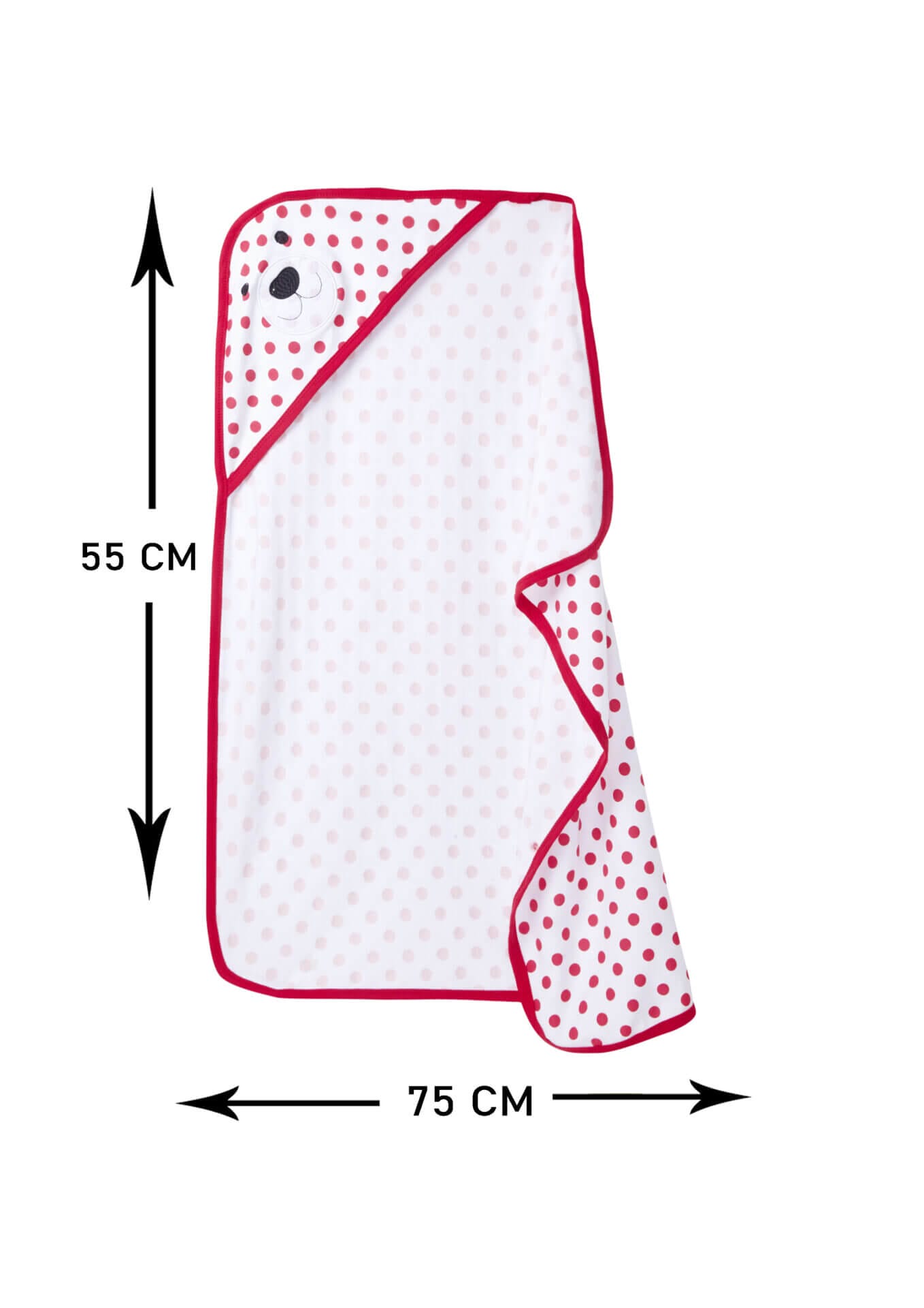 Hooded Baby Towel with Bear Face|Red Polka Dot |Babywish