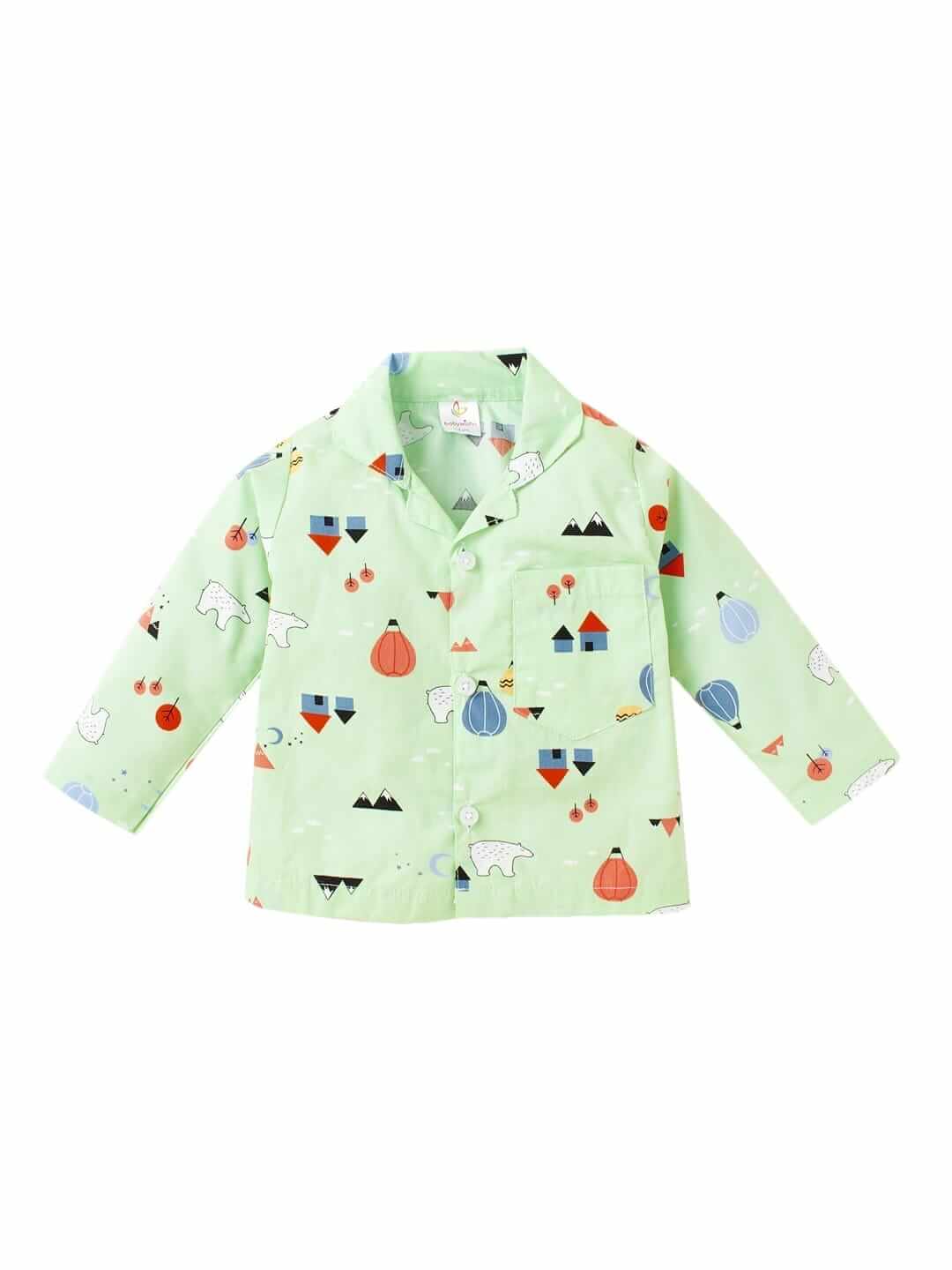 Kids Sleepsuit for Baby Boys and Girls Long Sleeve Topwear and Pajamas Set Baby Clothing Sleepwear Set Green Bear Print for Newborns and Toddlers