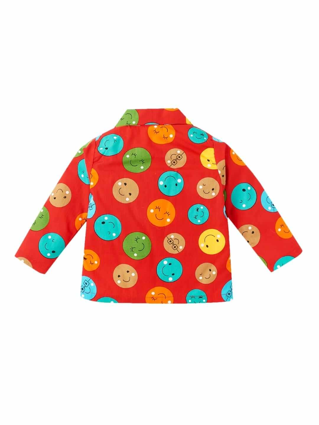 Kids Sleepsuit for Baby Boys and Girls Long Sleeve Topwear and Pajamas Set Baby Clothing Sleepwear Set Red Color Smiley Print for Newborns and Toddlers