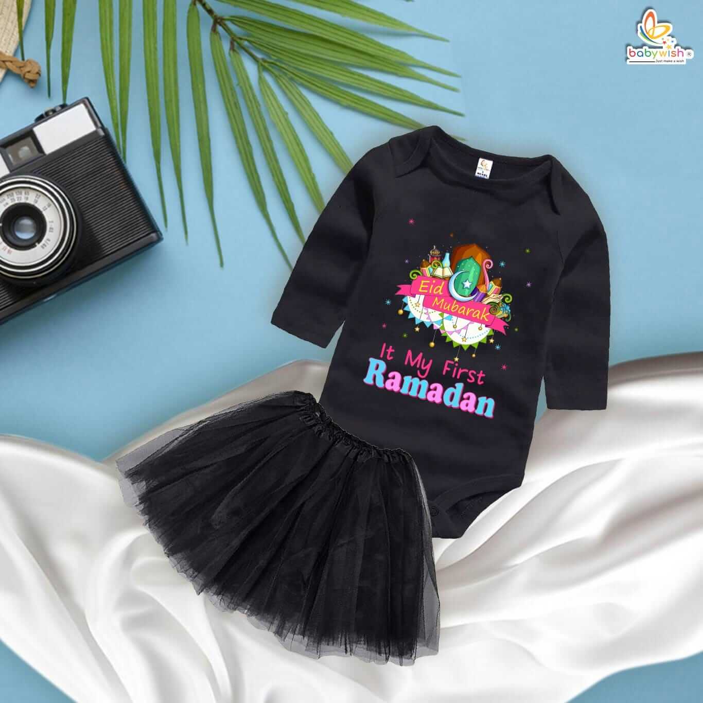 Newborn girls tutu skirt Full Sleeve romper Eid print onesies bodysuits for baby 0 to 12 months