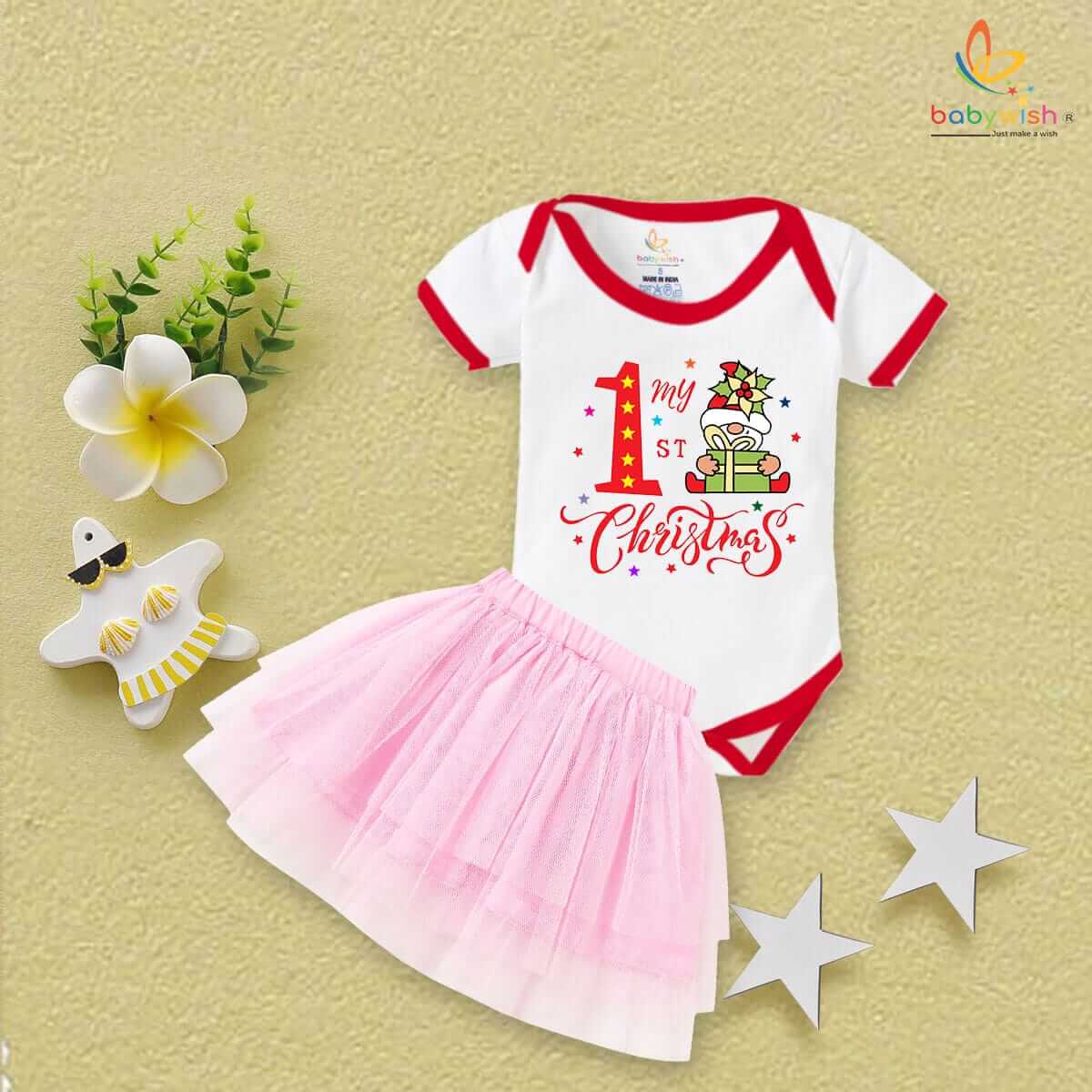 Newborn girls tutu skirt romper Christmas print onesies bodysuits for baby 0 to 12 months