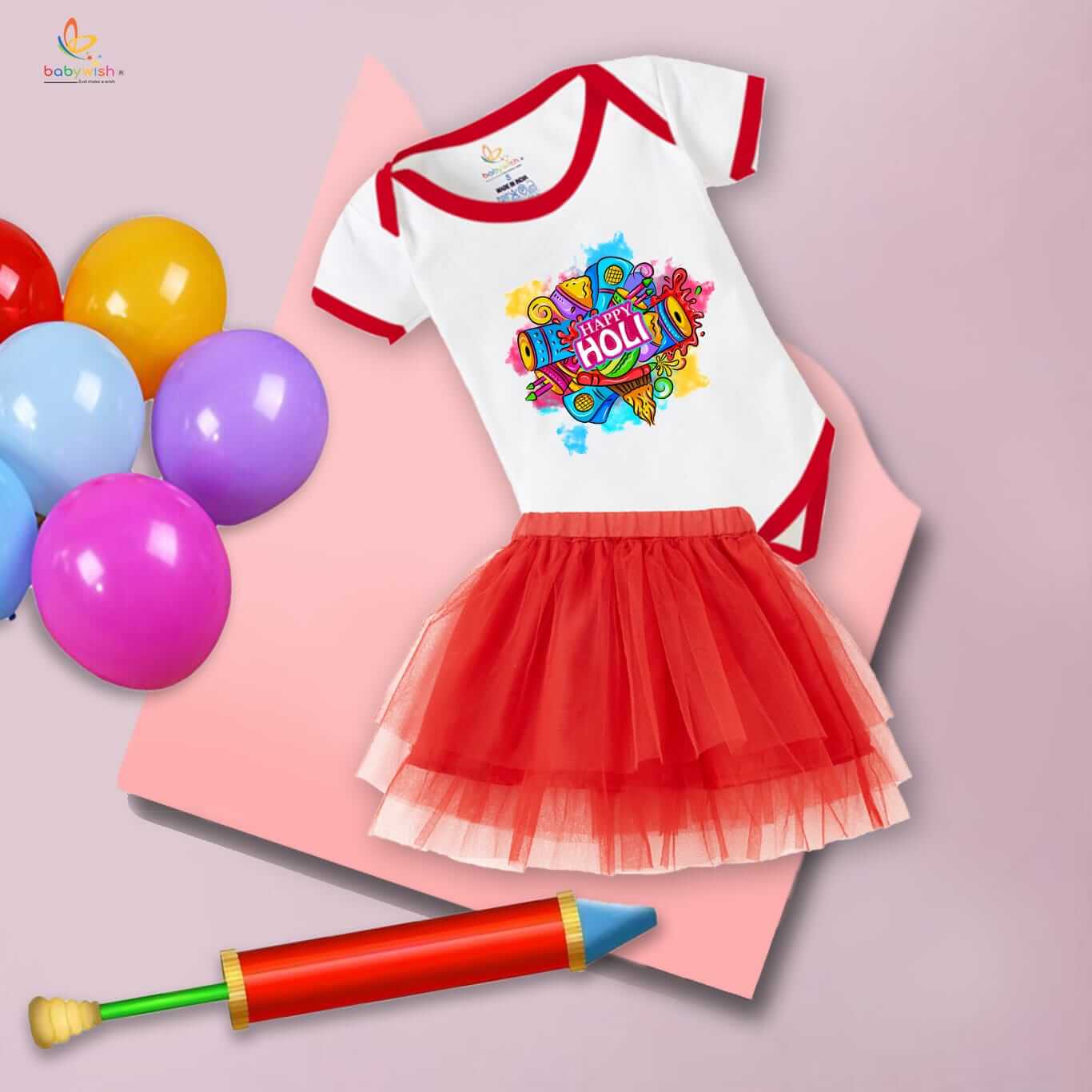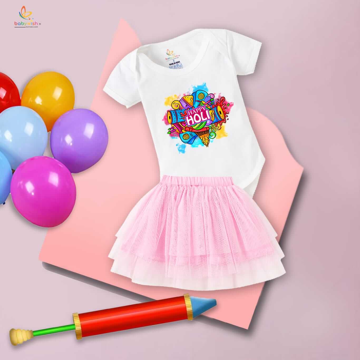 Newborn Girl’s Tutu Skirt & Romper | Holi Print Onesies Bodysuits | Baby 0–3 Months Outfit | Soft, Comfortable, Breathable Dress for Festivals, Parties & Everyday Wear