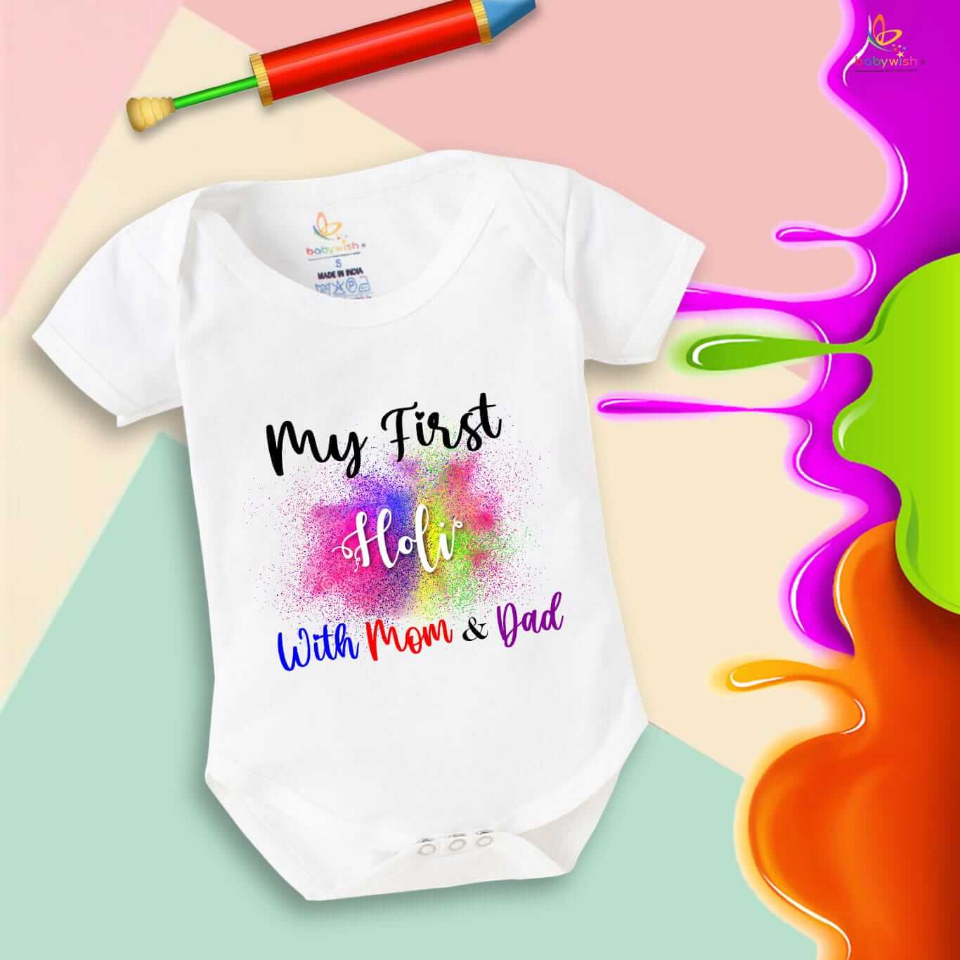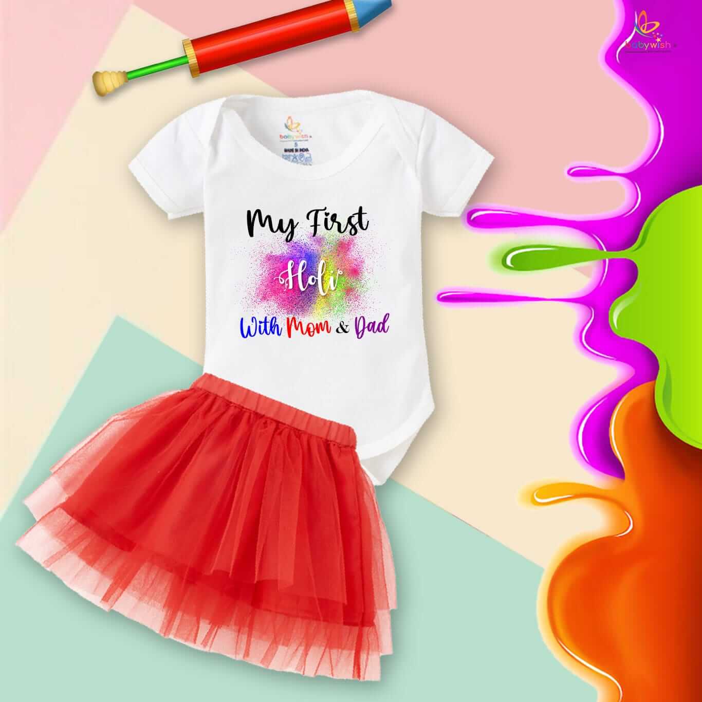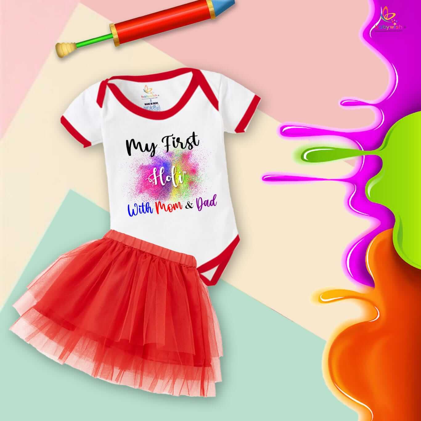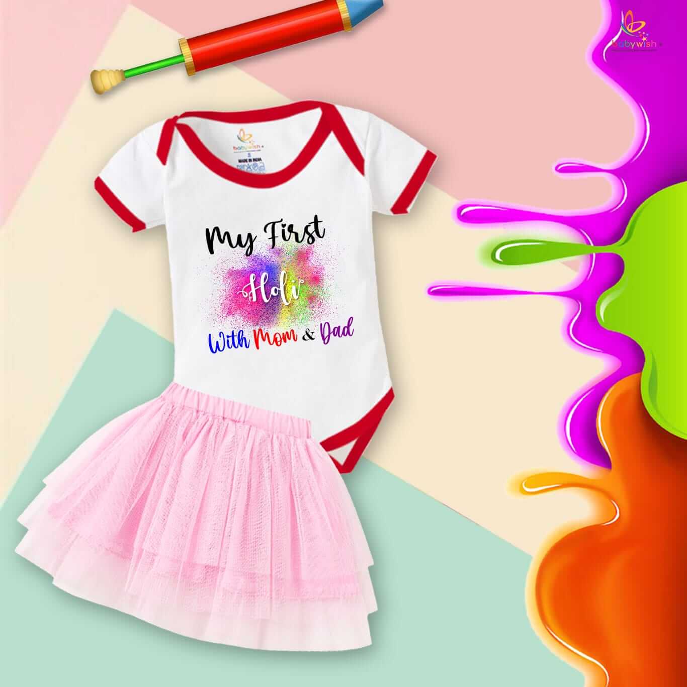 Newborn Girl’s Tutu Skirt & Romper | Holi Print Onesies Bodysuits | Soft, Comfortable Baby Outfit for 0–3 Months | Perfect for Festivals, Parties & Everyday Wear