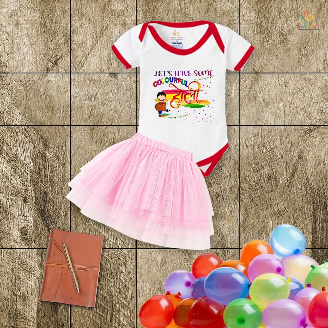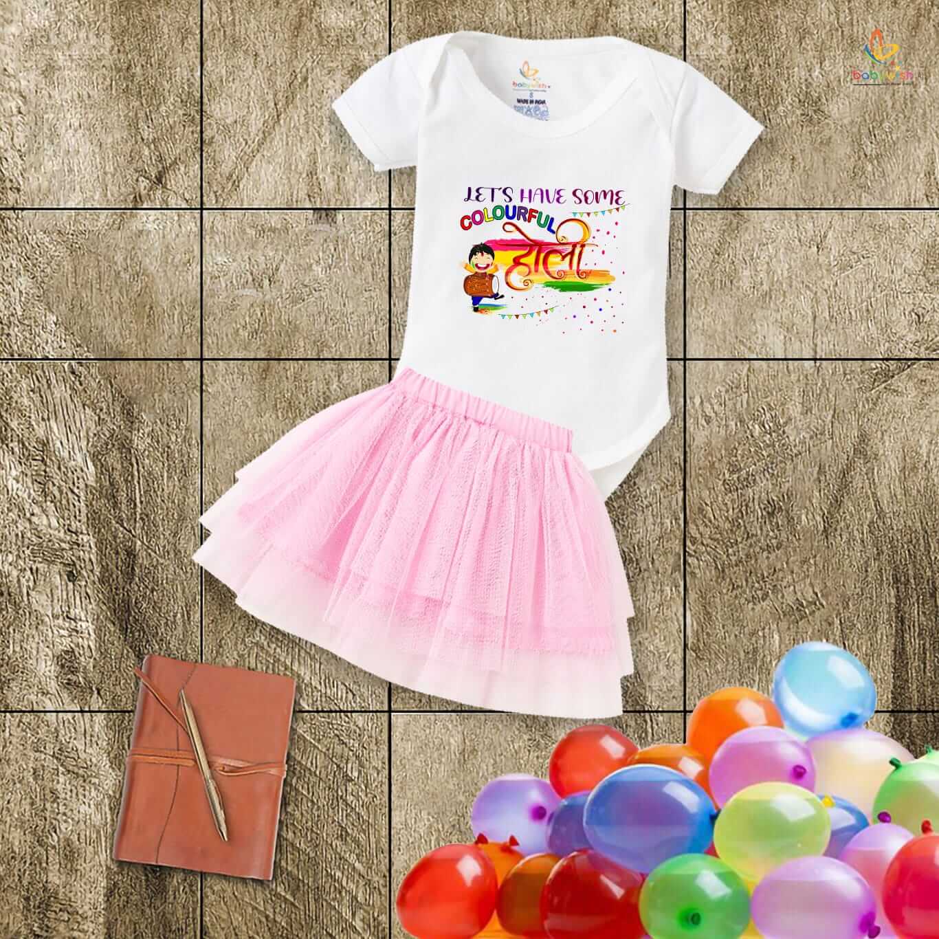 Newborn Girl’s Tutu Skirt & Romper | Holi Print Onesies Bodysuits | Baby 0–3 Months Outfit | Soft, Comfortable, Breathable Dress for Festivals, Parties & Everyday Wear