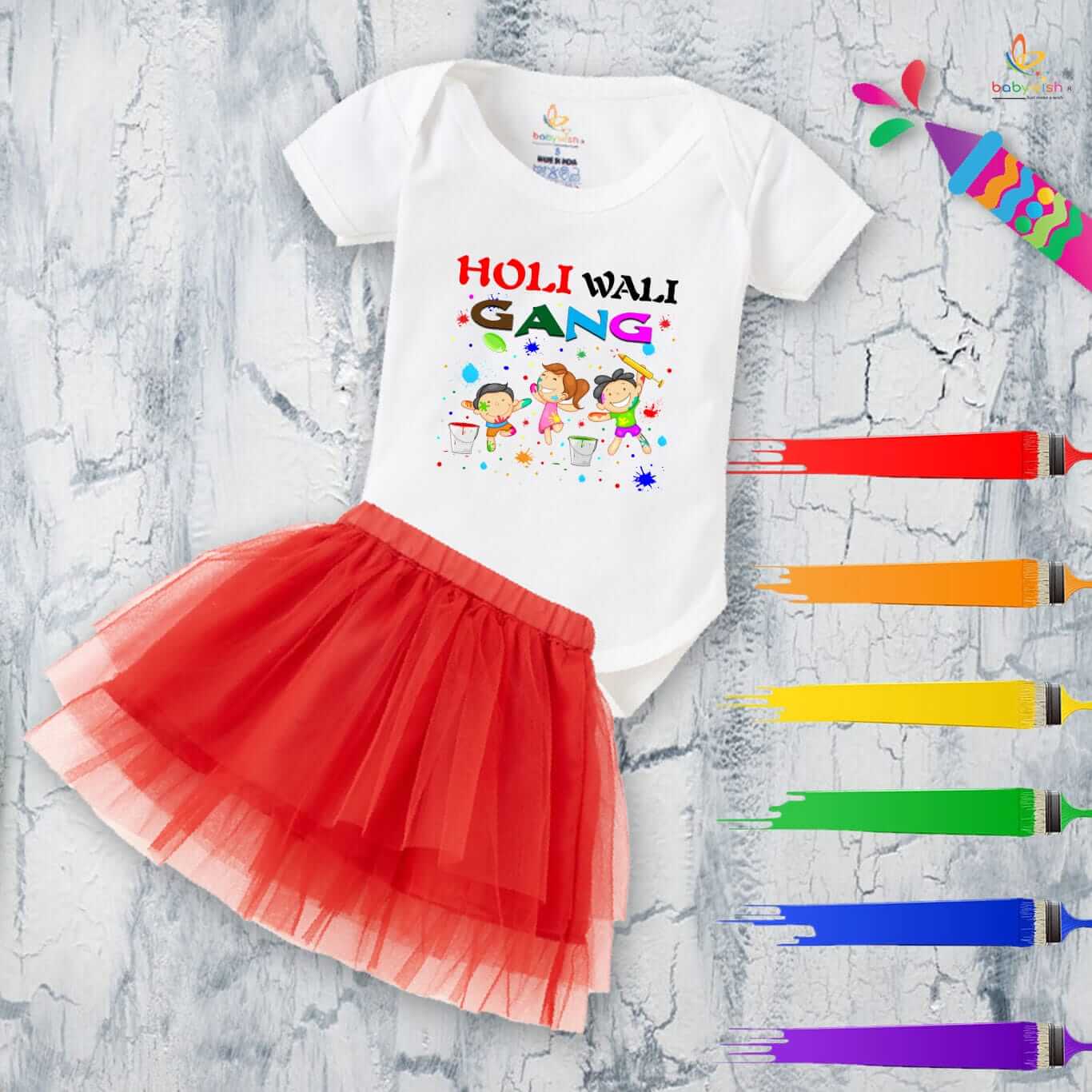 Newborn Girl’s Tutu Skirt & Romper | Holi Print Onesies Bodysuits | Baby 0–3 Months Outfit | Soft, Comfortable, Breathable Dress for Festivals, Parties & Daily Wear