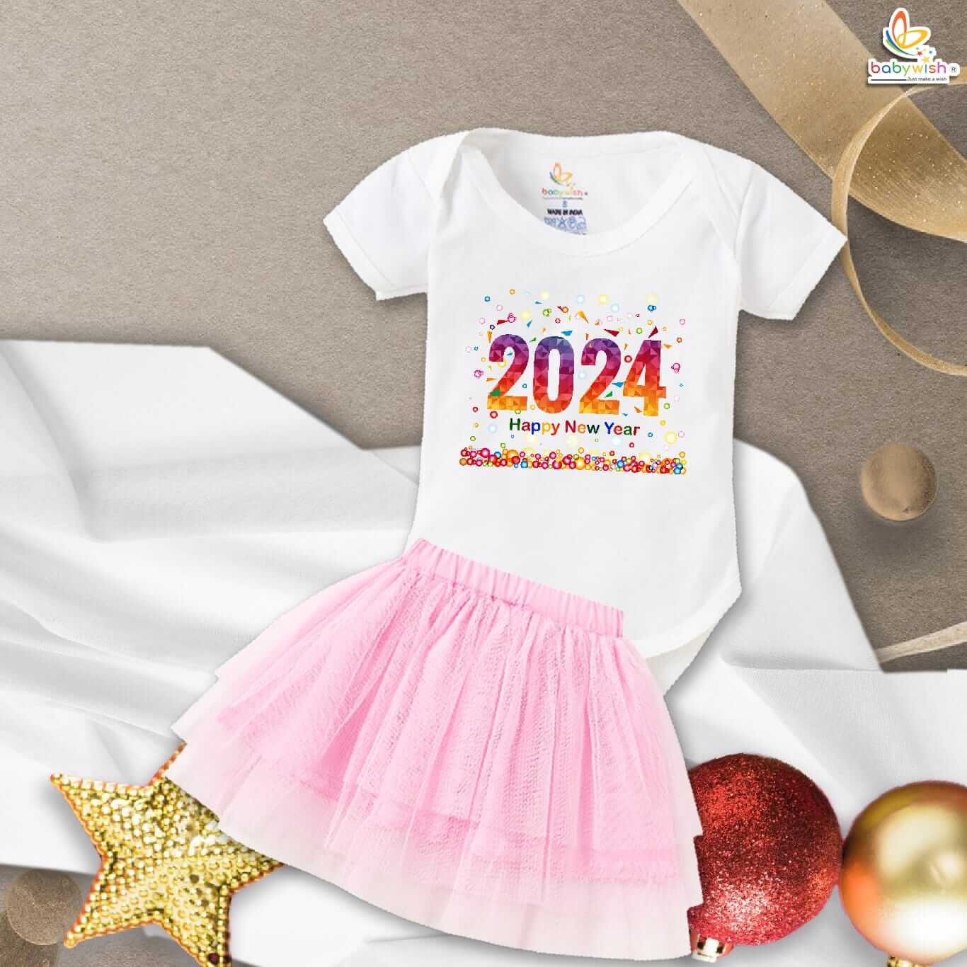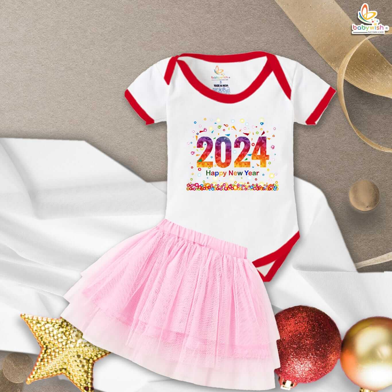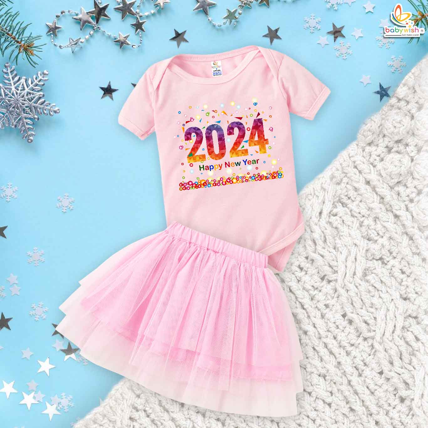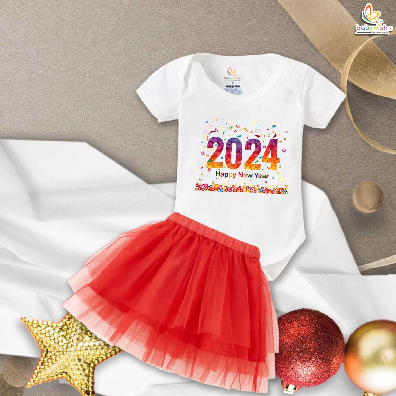 Newborn girls tutu skirt romper New Year print onesies bodysuits for baby 0 to 12 months