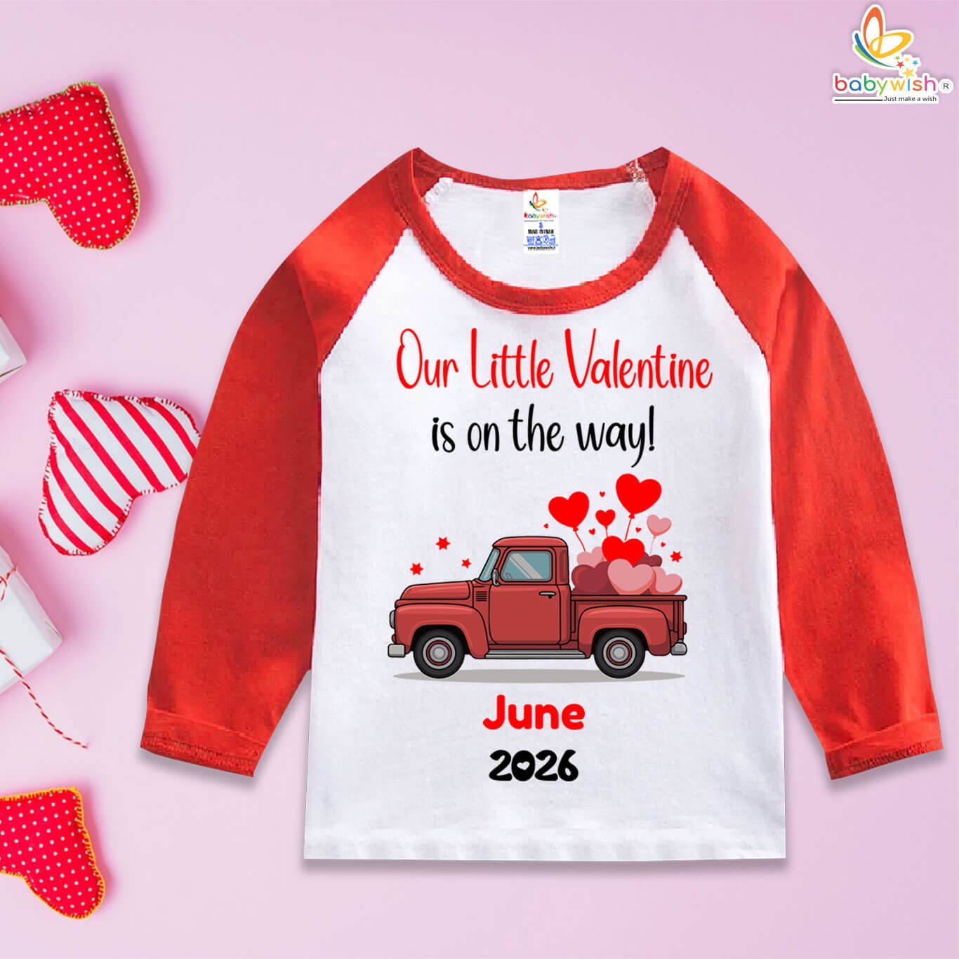 Available for ages 6–12 months and 1–6 years, this outfit is ideal for Valentine pregnancy announcements, newborn gifting, sibling reveals, and milestone photo sessions. With Babywish’s trusted quality and thoughtful design, this T-shirt beautifully blends love, comfort, and celebration.