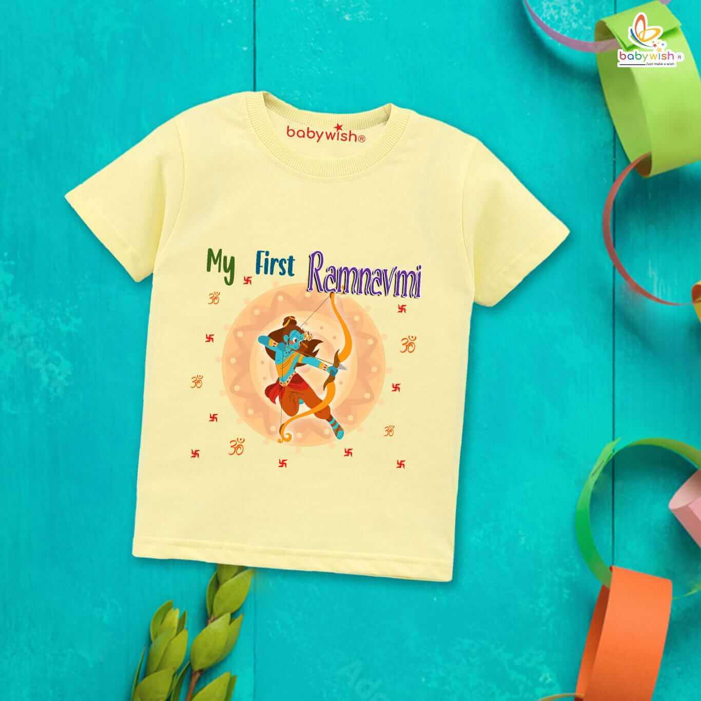 My First Ram Navmi T-shirt for Kids | Baby & Toddler Unisex Outfit | Half Sleeve Cotton Printed Topwear Dress for Boys & Girls | Comfortable Festive Navratri Clothing