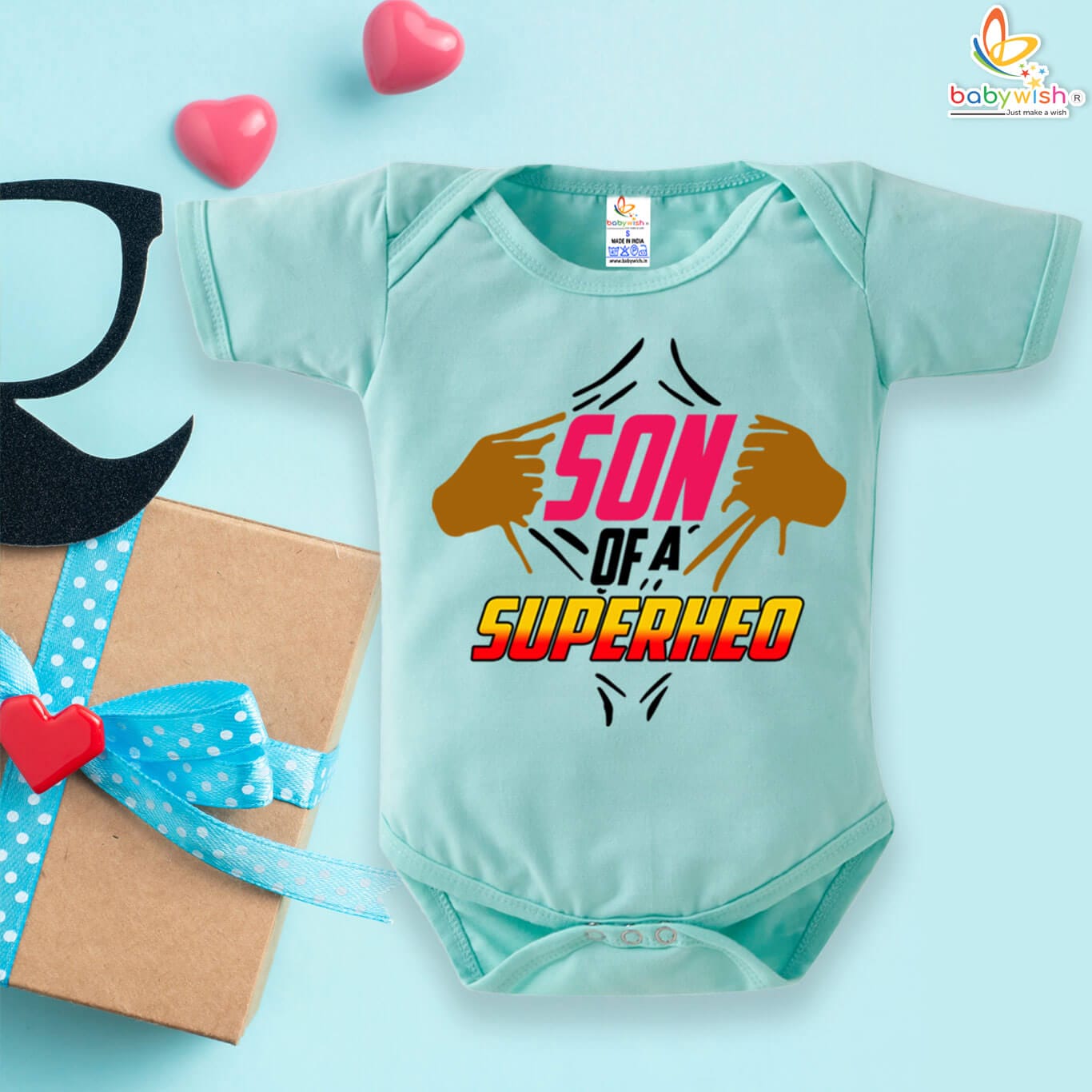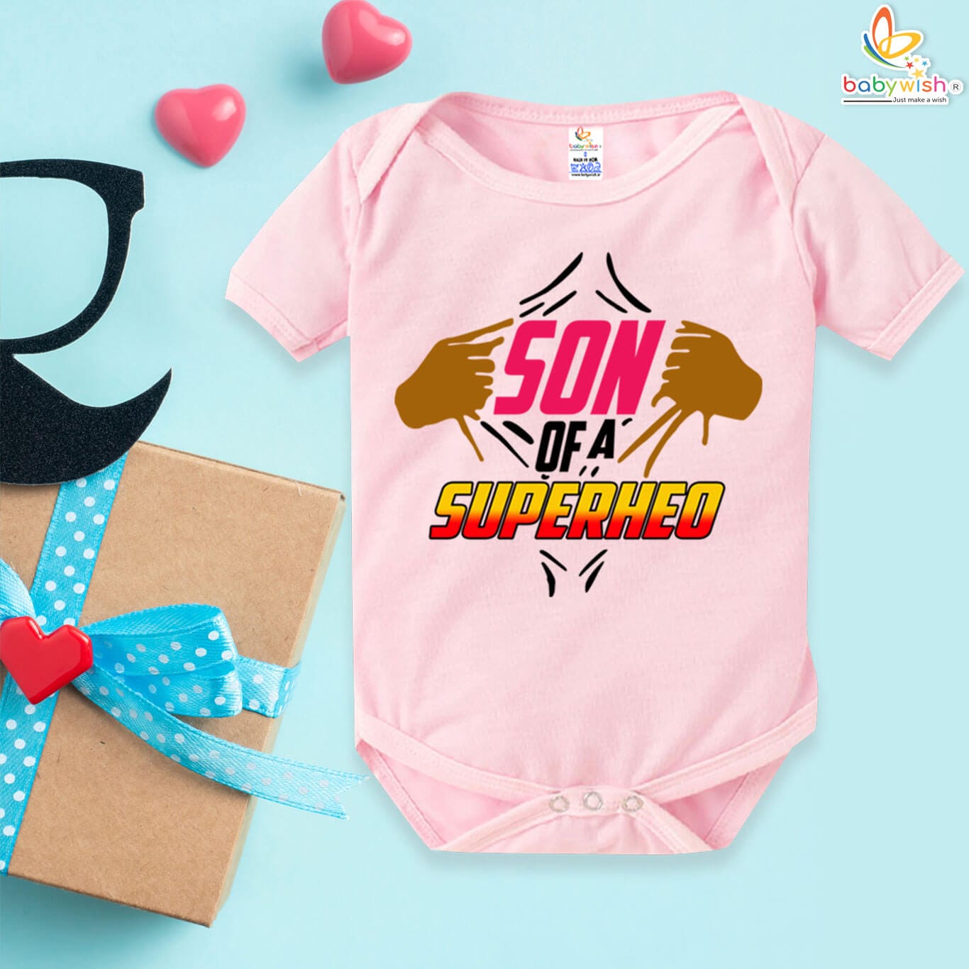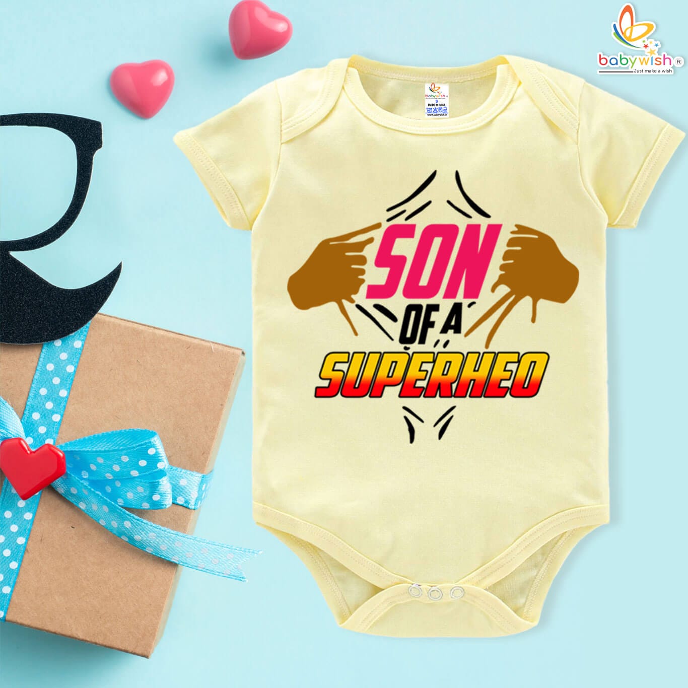 Celebrate dads superhero status with our bold Son of a Superhero romper the perfect Fathers Day baby outfit. Soft cotton comfort meets comic style design to create a gift that is fun, meaningful, and photo ready. Whether you are capturing memories or giving dad a big surprise, this romper says it all.