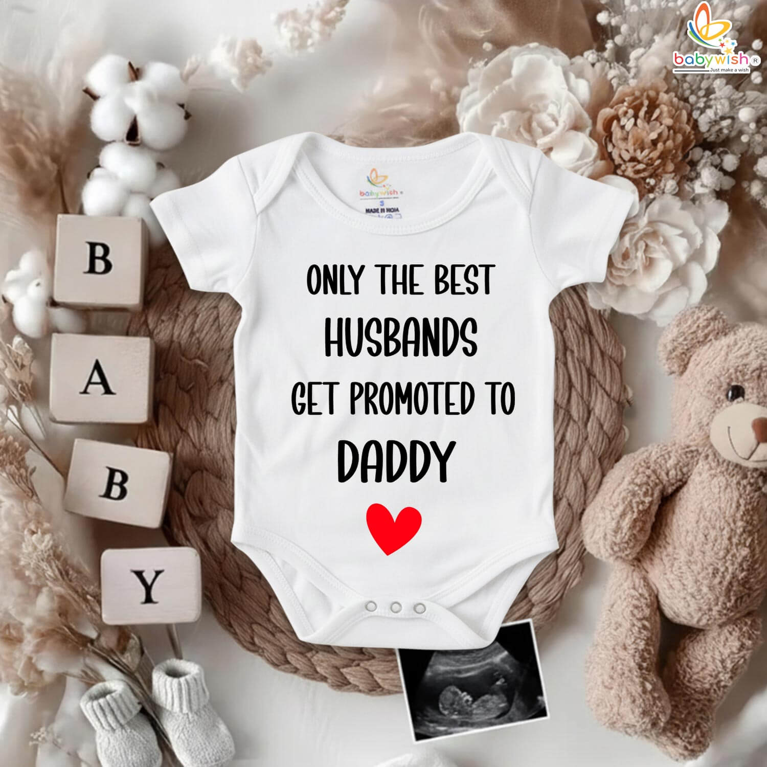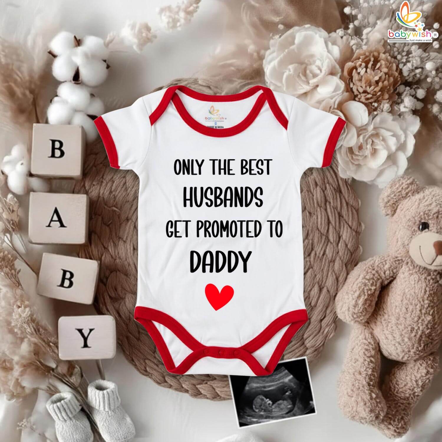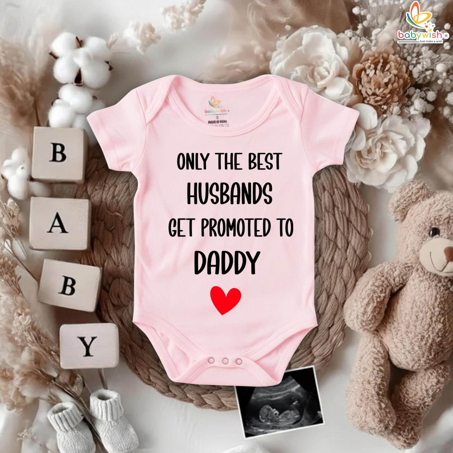 Make your pregnancy reveal extra special with the “Only The Best Husbands Get Promoted to Daddy” romper — a heartfelt way to share your big news. Designed with love, this romper makes a touching pregnancy announcement gift for your husband or expecting partner.
