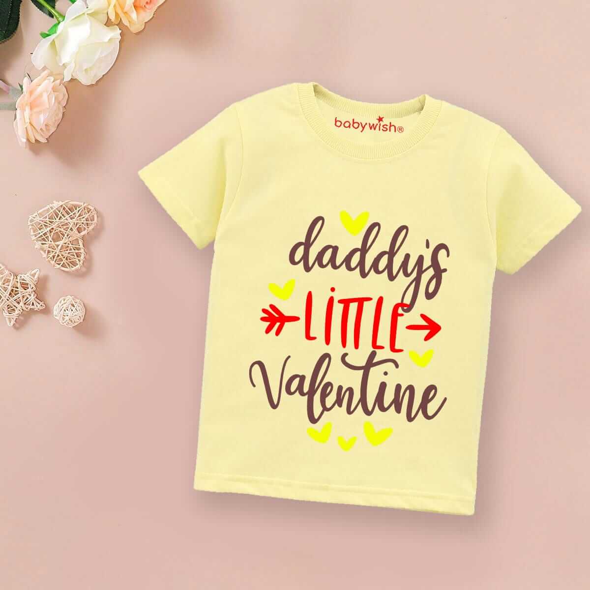 Valentine Day T-shirt for Kids | Unisex Valentine Topwear Outfit | Cute Printed Half Sleeve Tshirt Dress for Baby Boy & Girl “Daddy’s Little Valentine” Casual Valentine Wear | Babywish