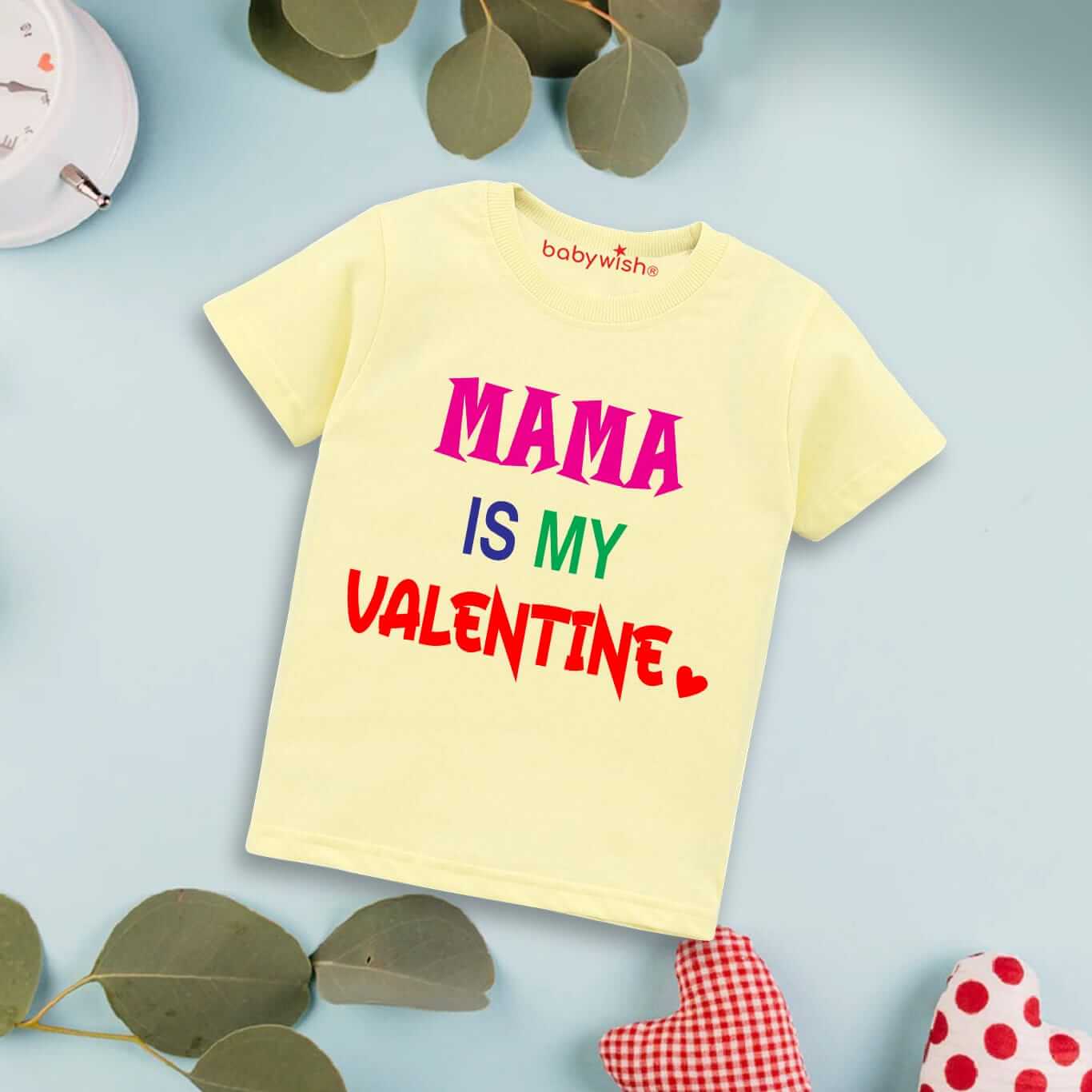 Valentine’s Day T-shirt for Kids | Unisex Valentine Topwear Outfit | Printed Half Sleeve T-shirt Dress for Boys & Girls “Mama is my Valentine on 14th Feb” | Cute Gift for Kids