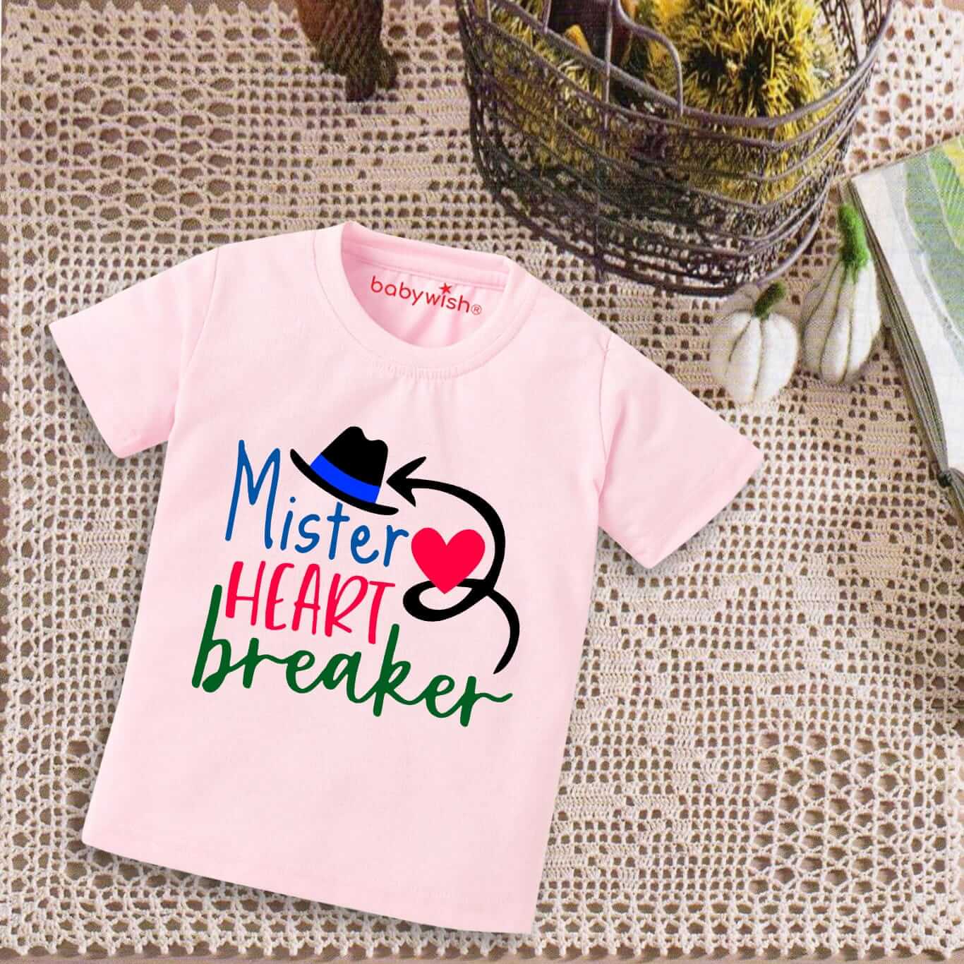 Valentine’s Day T-shirt for Kids | Unisex Valentine Topwear Outfit | Printed Half Sleeve T-shirt Dress for Boys & Girls “Mister Heart Breaker” | Cute Toddler Gift