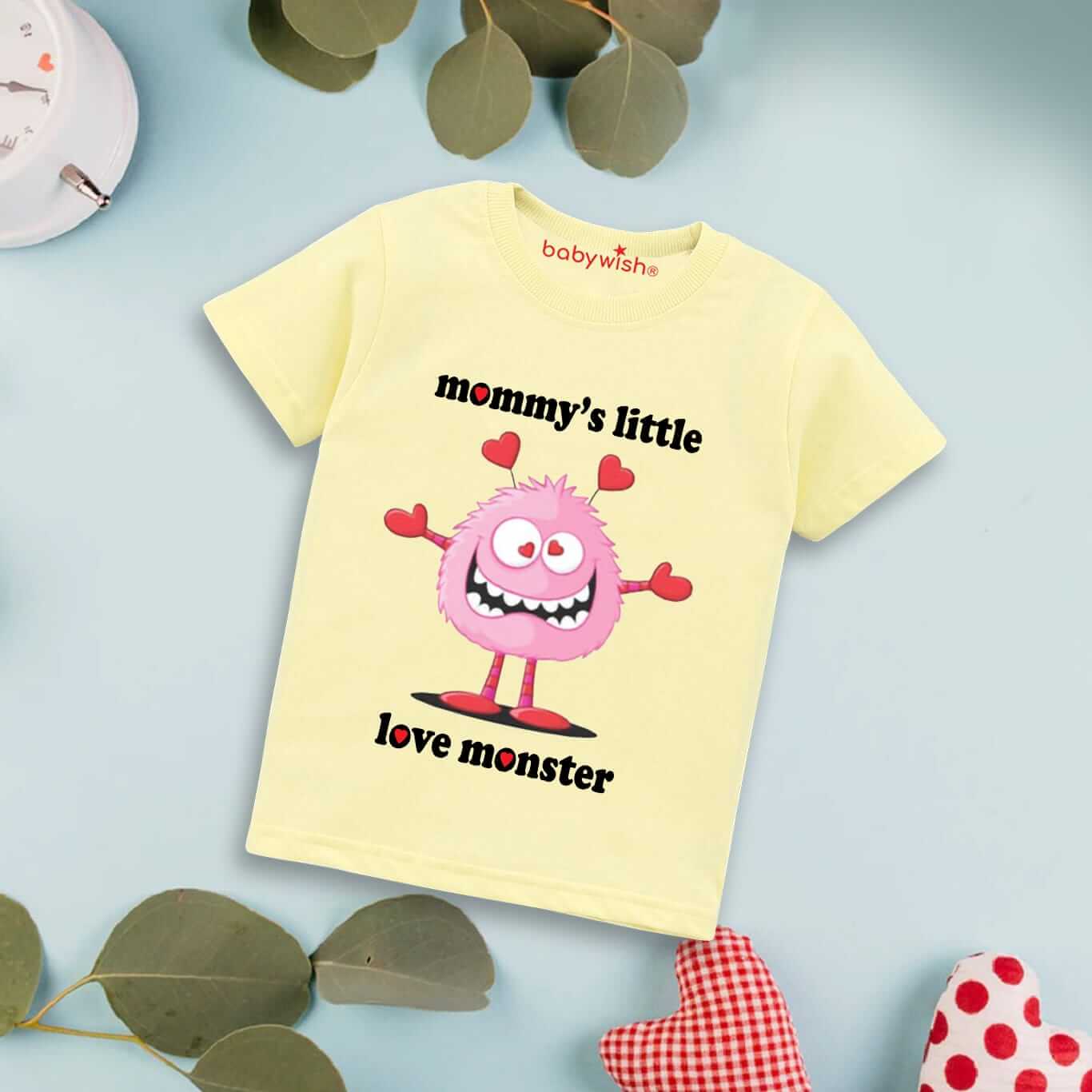 Valentine’s Day T-shirt for Kids | Unisex Valentine Topwear Outfit | Printed Half Sleeve T-shirt Dress for Boys & Girls “Mummy’s Little Love Monster” | Cute Gift for Toddlers