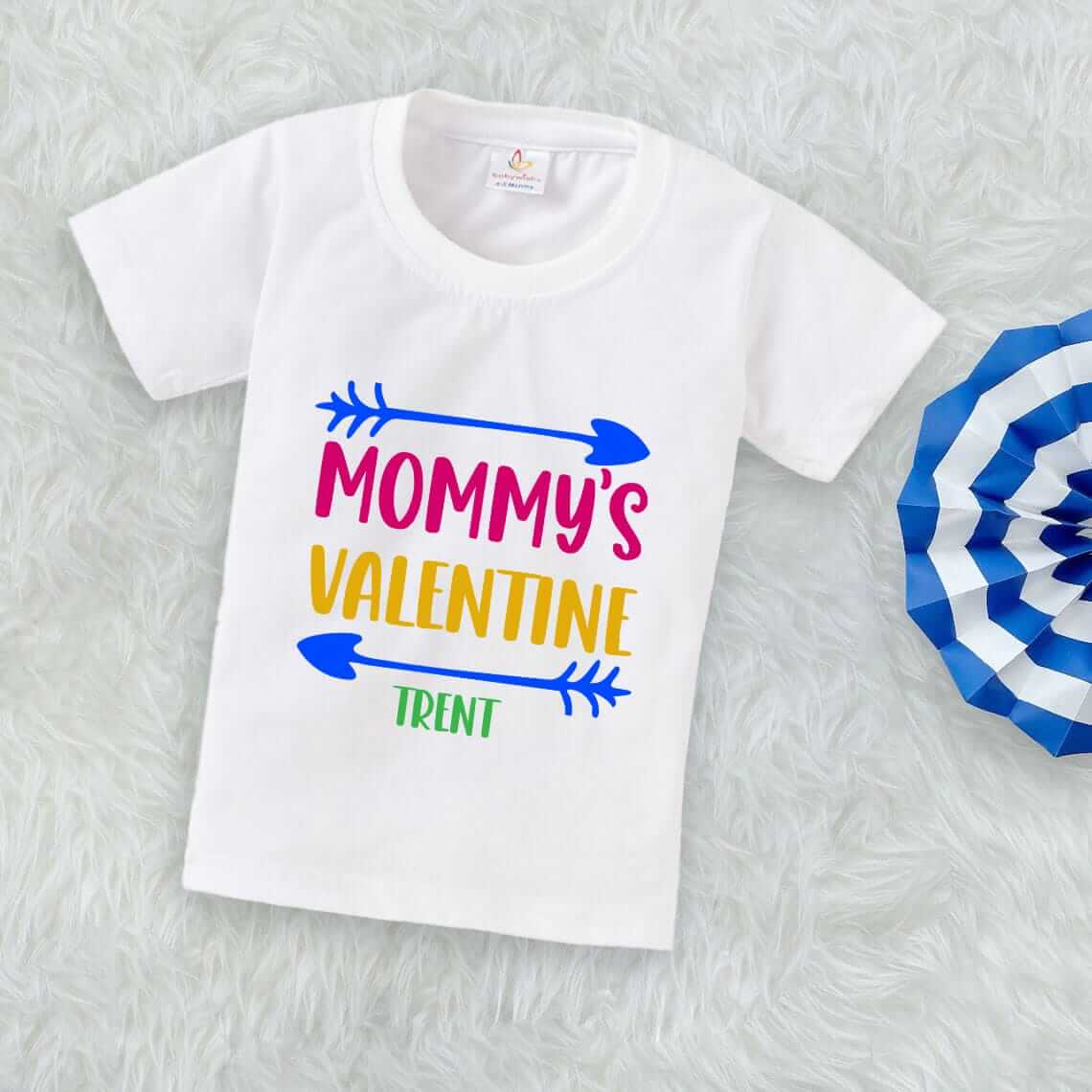 Valentine Day T-shirt for Kids | Unisex Valentine Topwear Outfit | Printed Half Sleeve Tshirt Dress for Baby Boy & Girl “Mummy’s Valentine Trent” | Cute Baby Valentine Gift Tee | Babywish