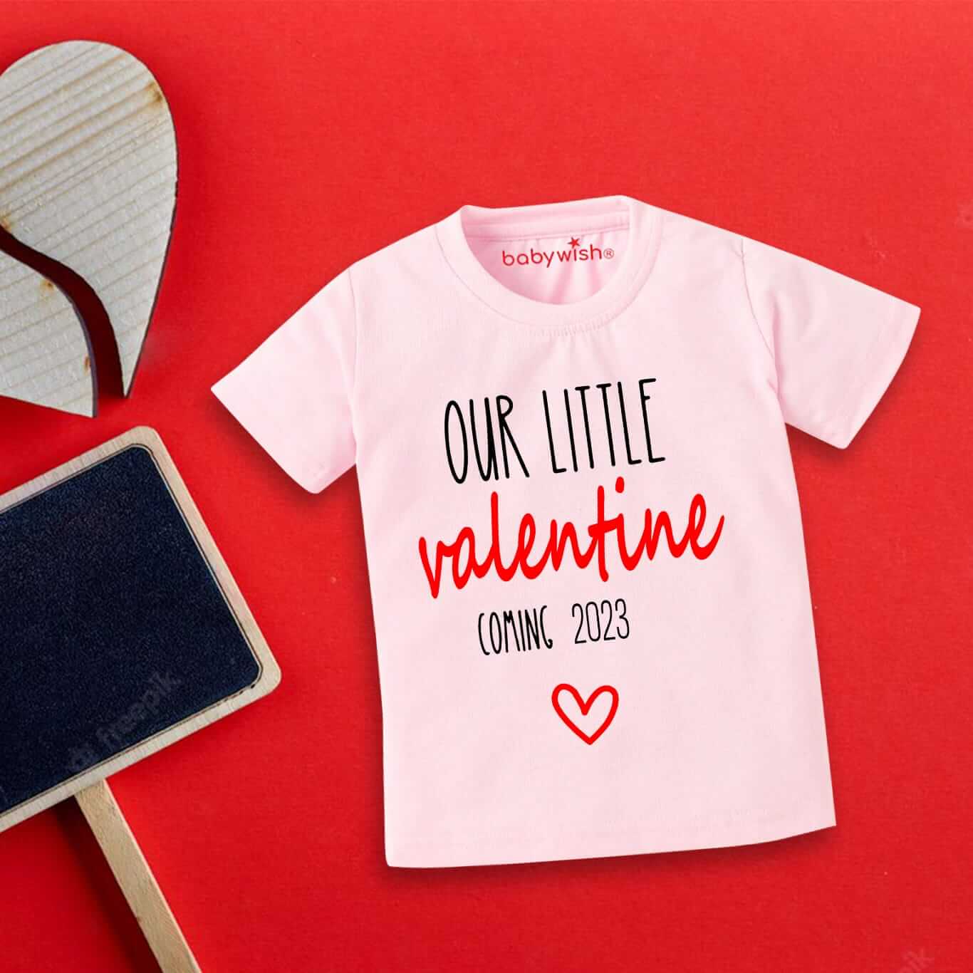 Valentine’s Day T-shirt for Kids | Unisex Valentine Topwear Outfit | Printed Half Sleeve T-shirt Dress for Boys & Girls “Our Little Valentine Coming in 2023” | Cute Gift for Kids