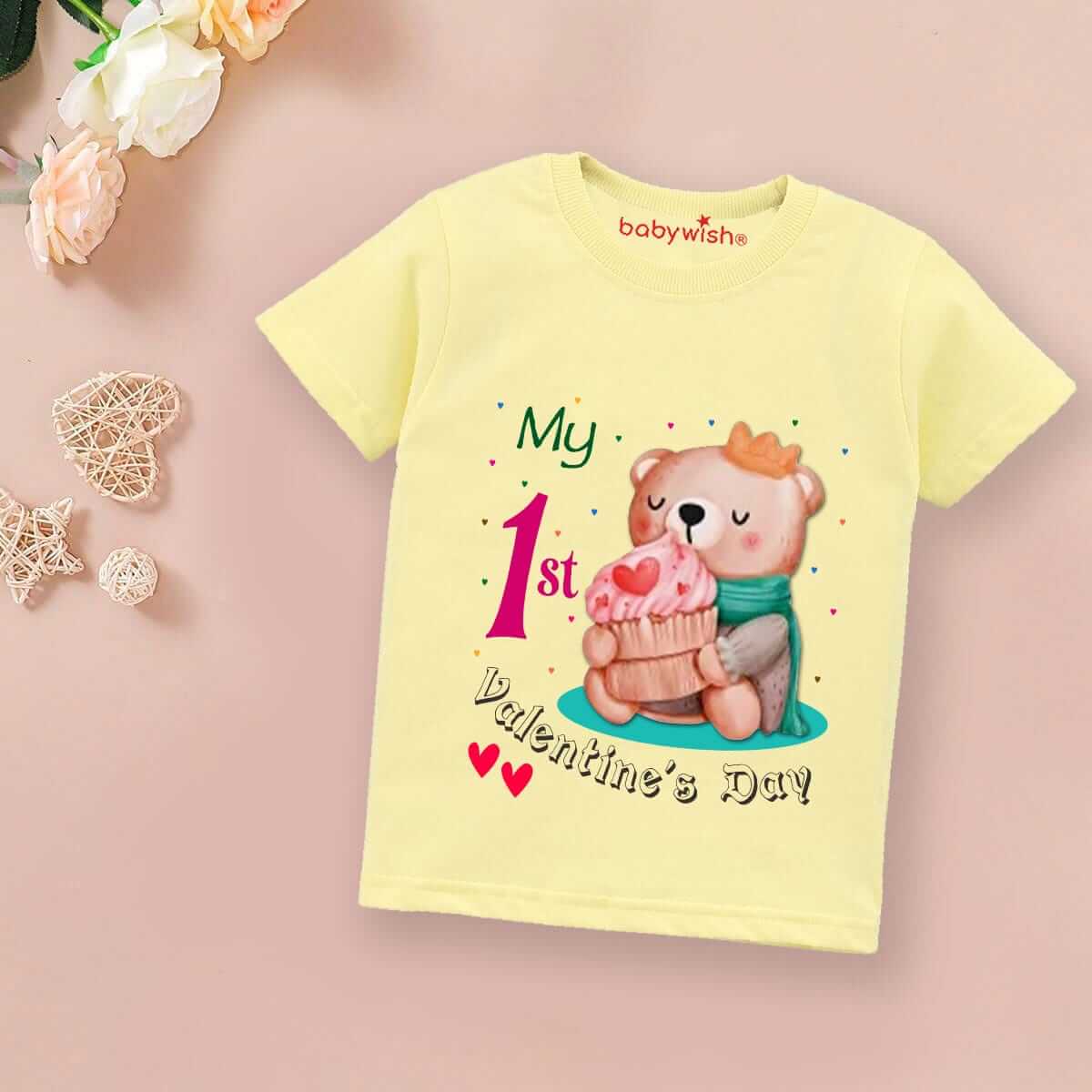 Valentine’s Day T-shirt for Kids | Unisex Valentine Topwear Outfit | Printed Half Sleeve T-shirt Dress for Boys & Girls “Teddy Bear Valentine Print” | Cute Gift for Kids