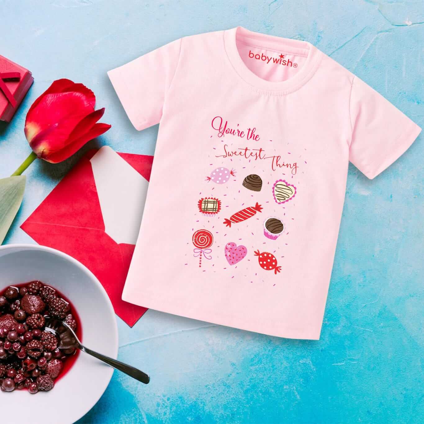 Valentine’s Day T-shirt for Kids | Unisex Valentine Topwear Outfit | Printed Half Sleeve T-shirt Dress for Boys & Girls “You Are the Sweetest Things” | Cute Gift for Kids